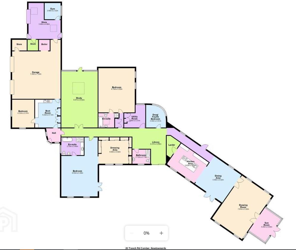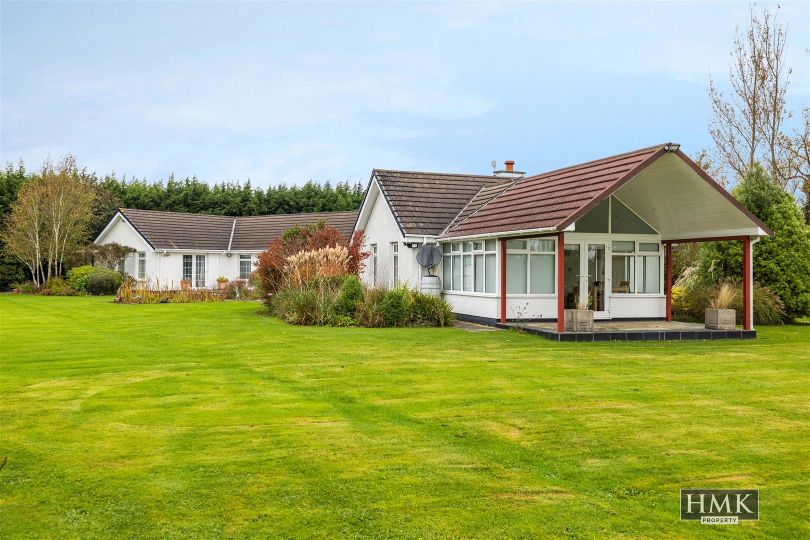 HMK Property is delighted to introduce 'Lisimore', 20 Trench Road, Comber to the sales market. This one of a kind property is nestled along the banks of Strangford Lough on 5.5 acres of beautifully landscaped lawns and wildflower gardens with a private lake and apple orchard. This substantial four-bed, four-reception bungalow offers versatile accommodation that can be easily adapted to suit a wide range of purchasers. The welcoming half crescent porch leads through to the entrance hall with beautiful Spanish stone tiling, a custom-designed library which overlooks a substantial south-facing garden and Strangford Lough. The reception hall leads to a spacious open plan kitchen dining room with bespoke fitted 'Sematic' kitchen complete with large island, and pantry overlooking the rolling countryside with direct access to a private patio. There are two further reception rooms currently used as a drawing room with a gas coal fire, and sun room with vaulted ceiling and uninterrupted views of the lough with access to a second patio area, ideal for entertaining during the summer months. 'Lisimore' boasts four excellent bedrooms, two of which are superb suites, with en-suite bathrooms, and the principle suite boasts an impressive dressing room. For those working from home, there is a substantial office with Spanish tile floor, ample storage, sky light and double doors out to a beautiful walled garden with ornamental pond. No.20 further benefits from a contemporary family bathroom, ironing room with extensive range of storage and a large utility that leads into the double garage with enormous amounts of storage on offer with an adjoining garden room and home gym. Tucked behind secure electric gates and approached via a sweeping driveway, 'Lisimore' provides a tranquil haven away from the hustle and bustle of everyday life. To arrange a private viewing, contact HMK Property today on 02890397712.