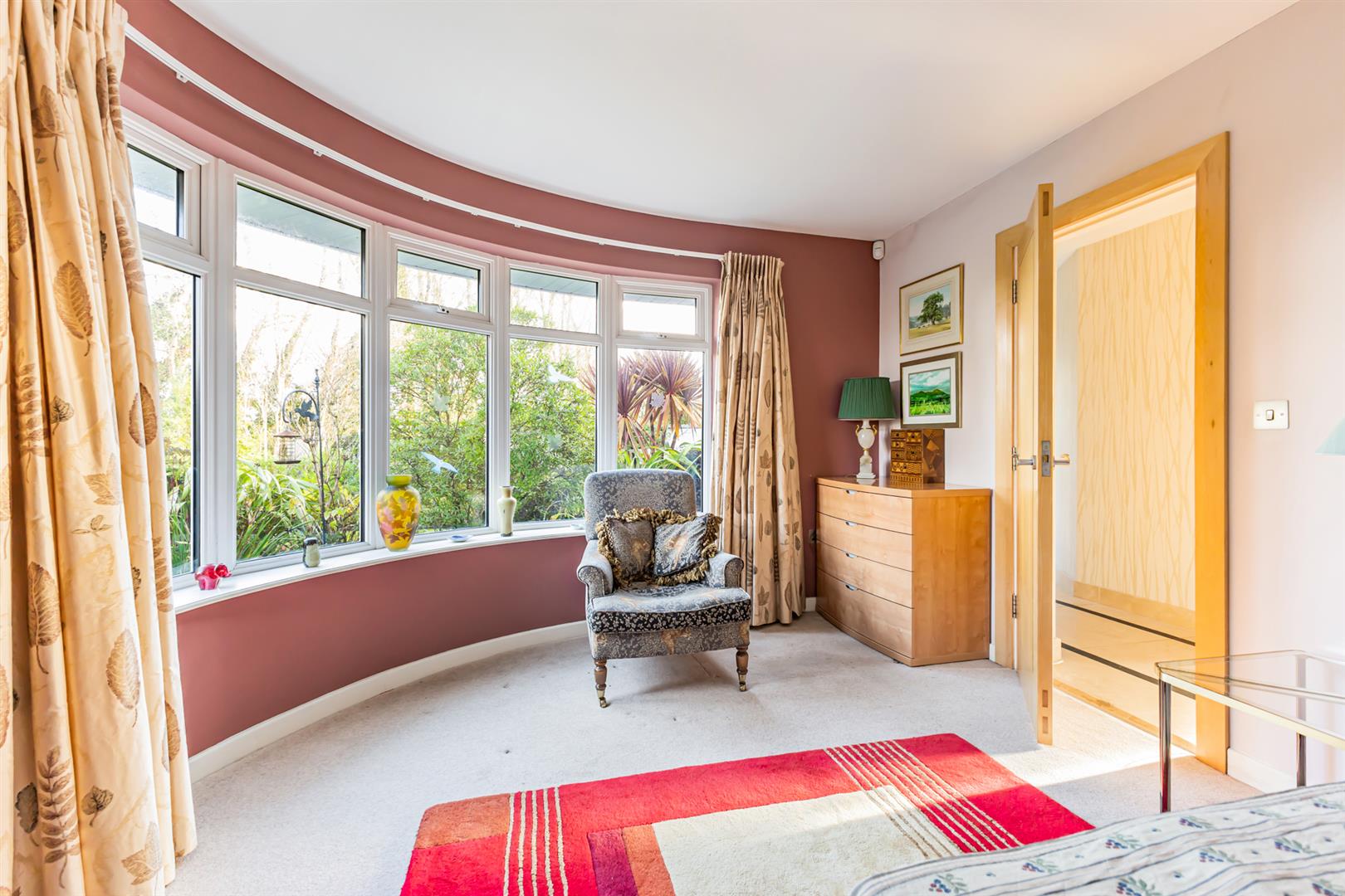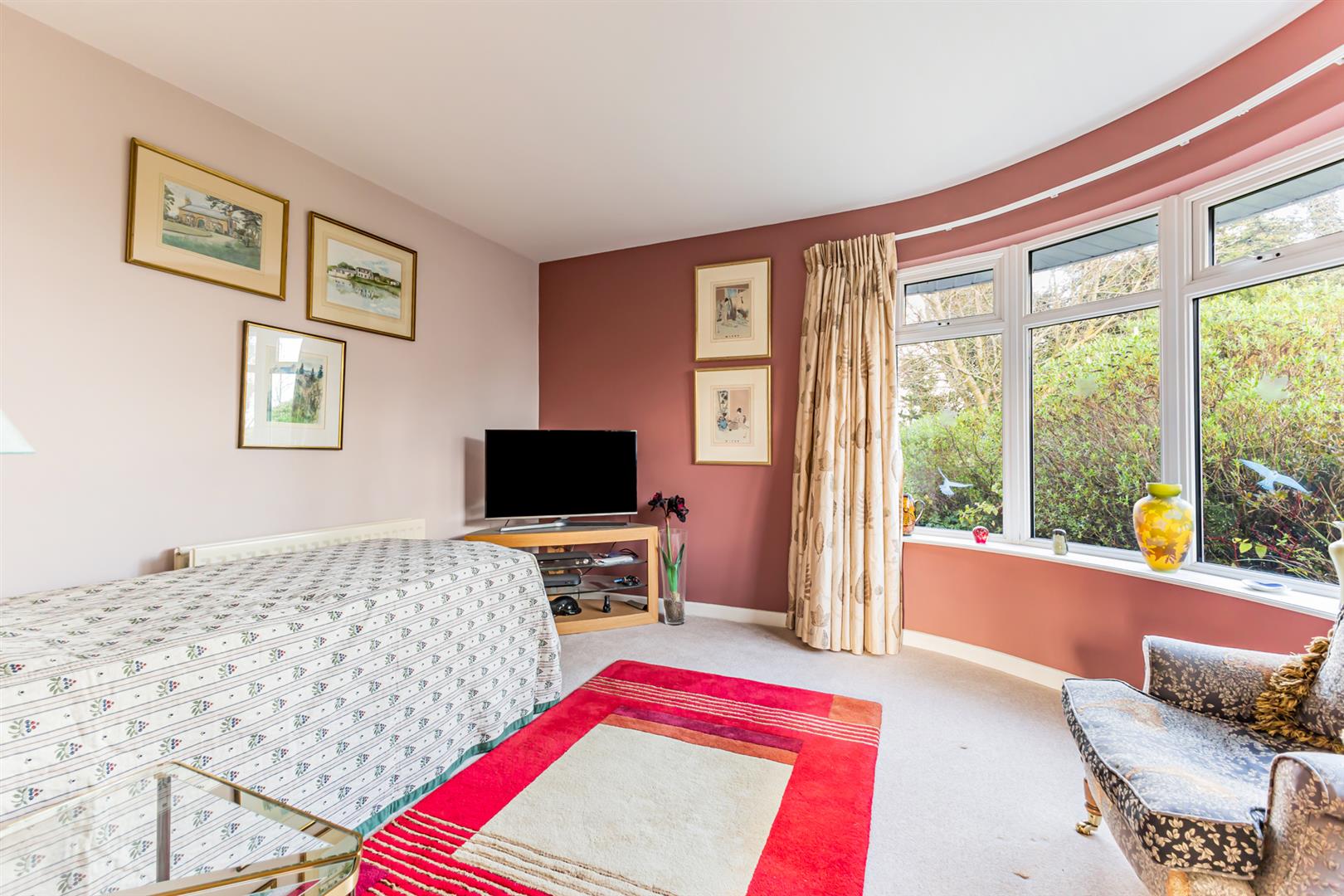 With feature bow window to mature gardens with easterly aspect.
