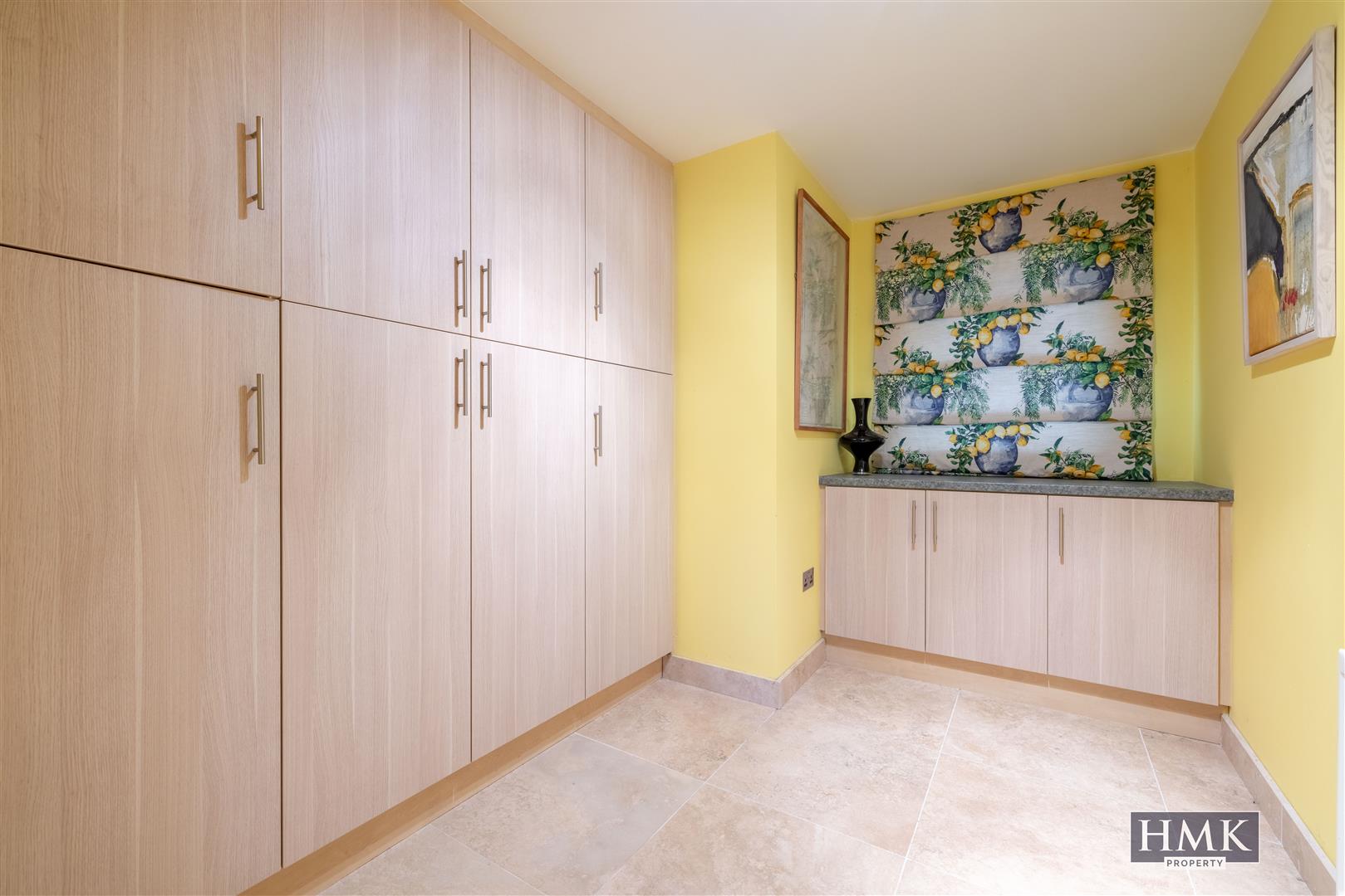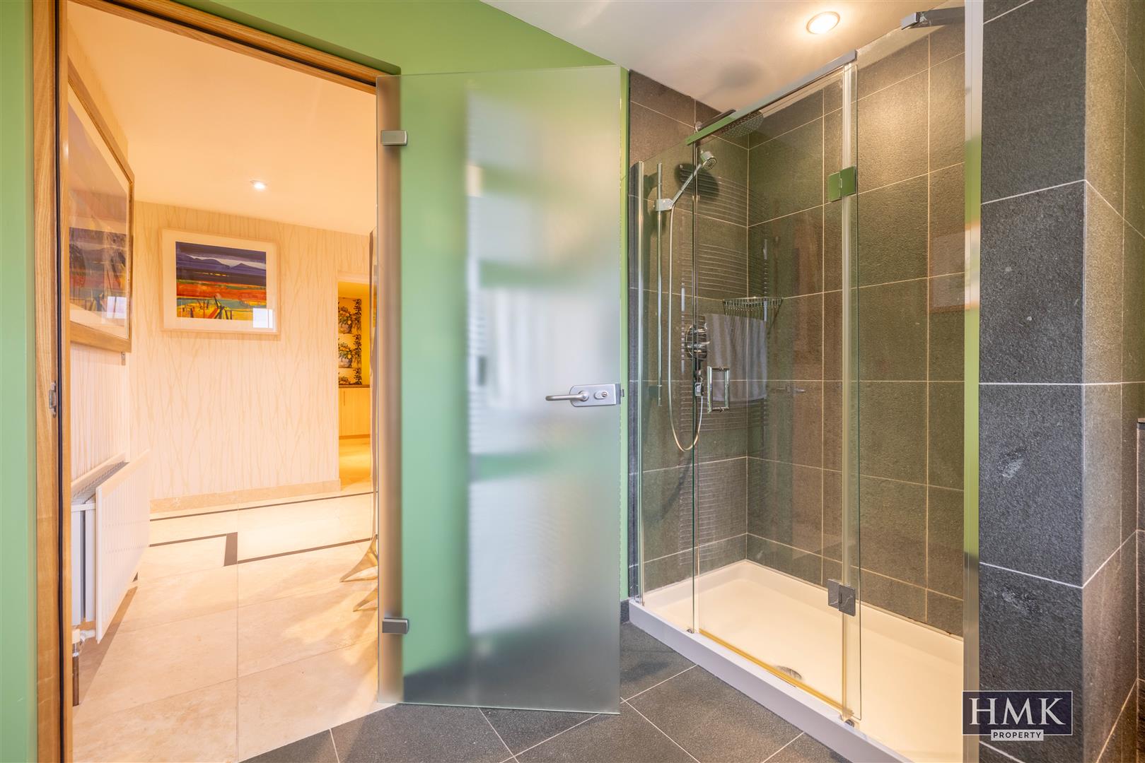 Beautiful stone flooring, linen press with pressurised water cylinder and heating controls.
