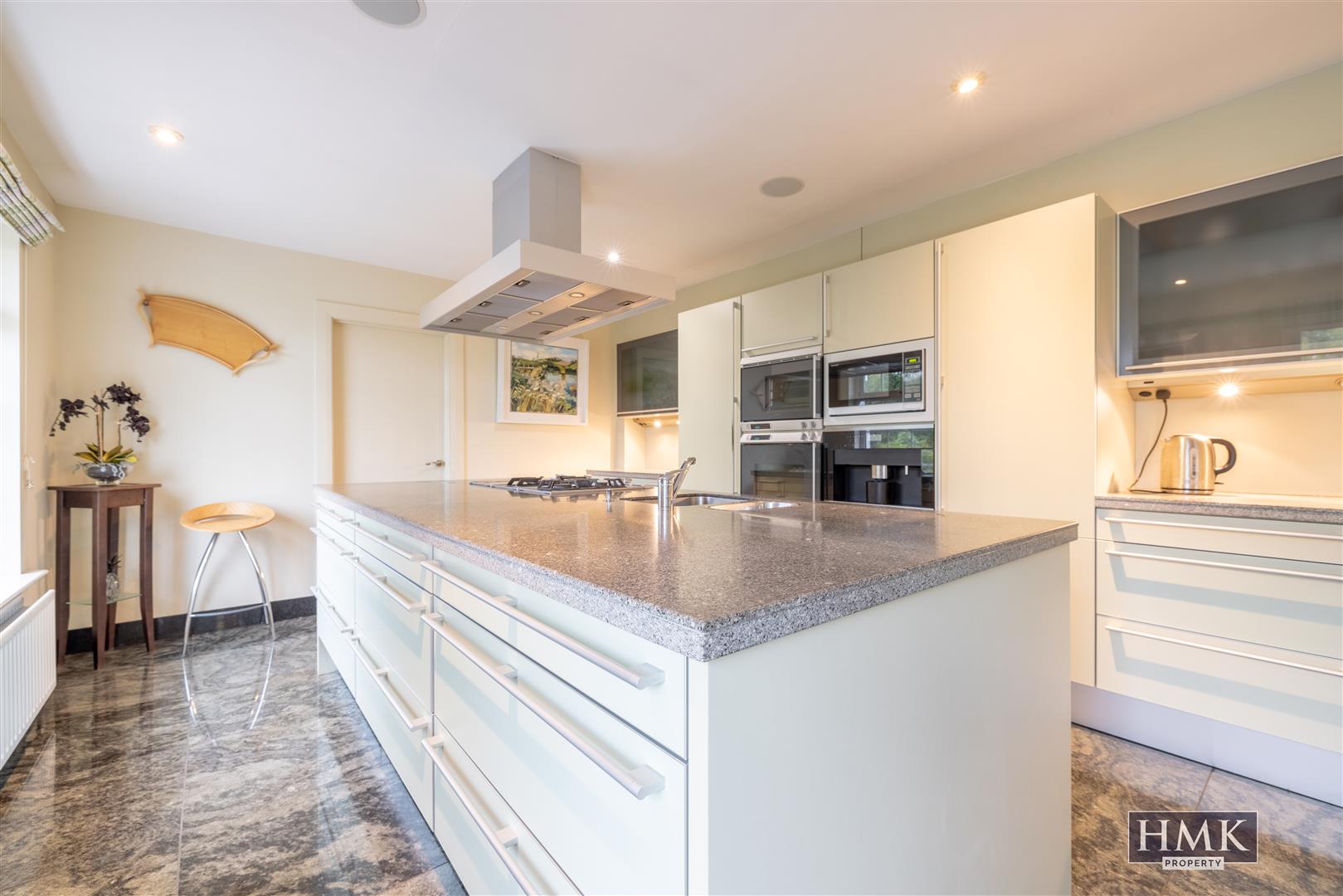 Open Plan Kitchen / Dining with Polished Granite Flooring, Fully Fitted Bespoke Sematic Kitchen with Extensive Range of High End Appliances and Outstanding Views Over the Lough and Gardens
