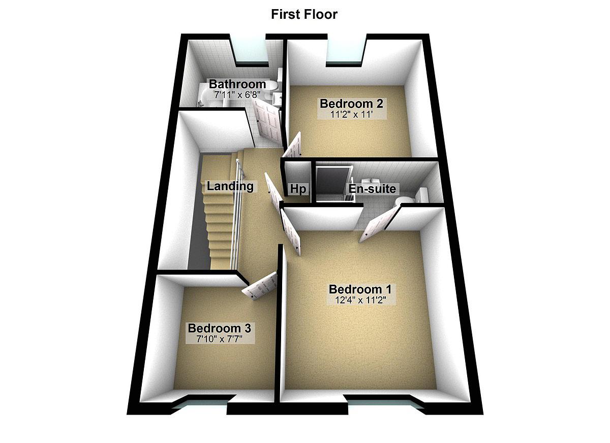 3 Bedrooms (1 ensuite shower room)