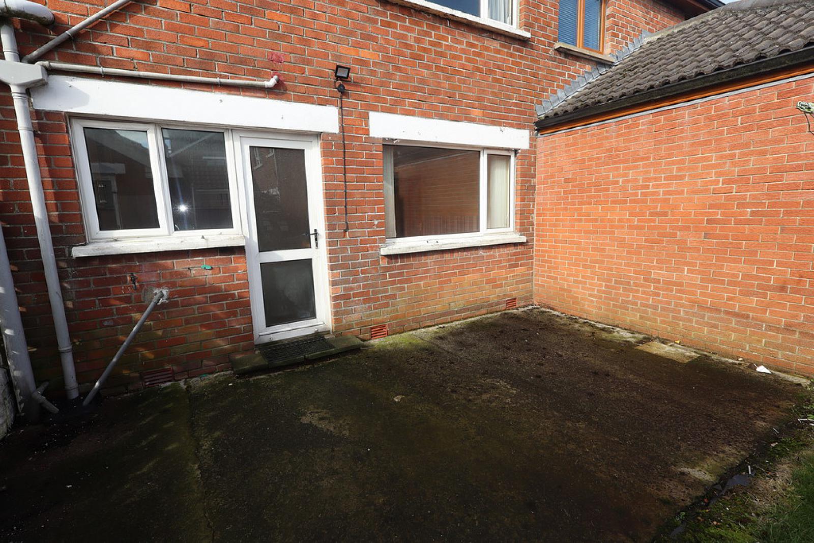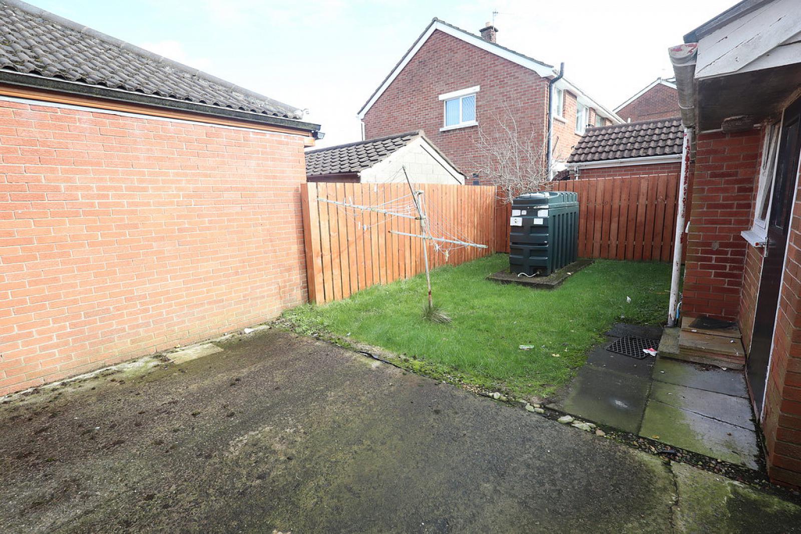 Rear garden laid to lawn. Outside light and tap.