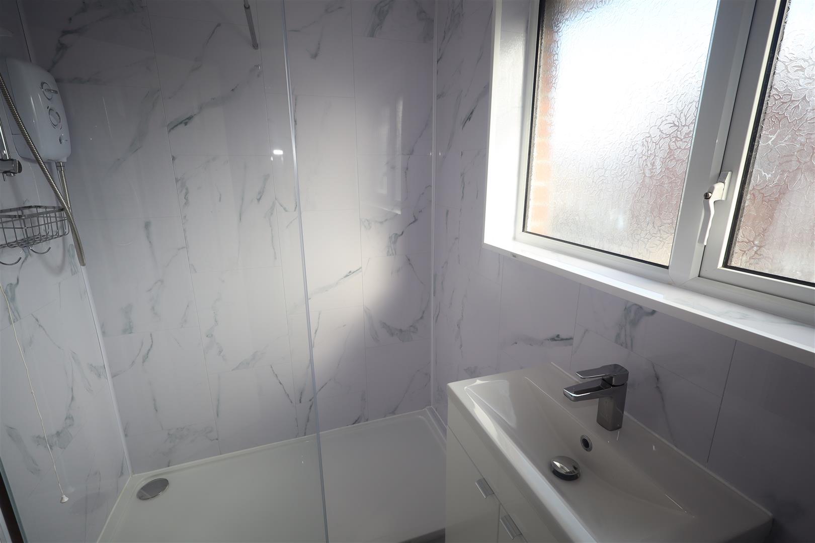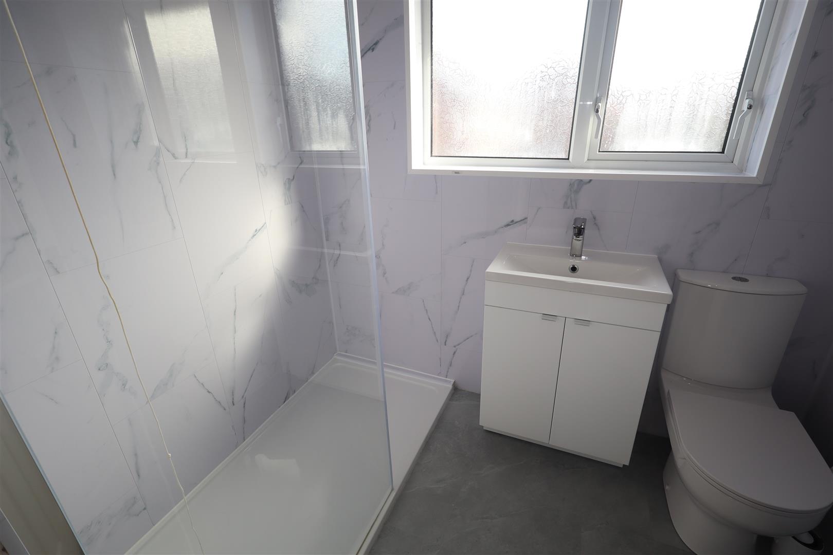 Walk in shower unit, electronically controlled shower with chrome attachment. Low flush WC. Vanity unit with chrome mixer tap. uPVC panelled ceiling.