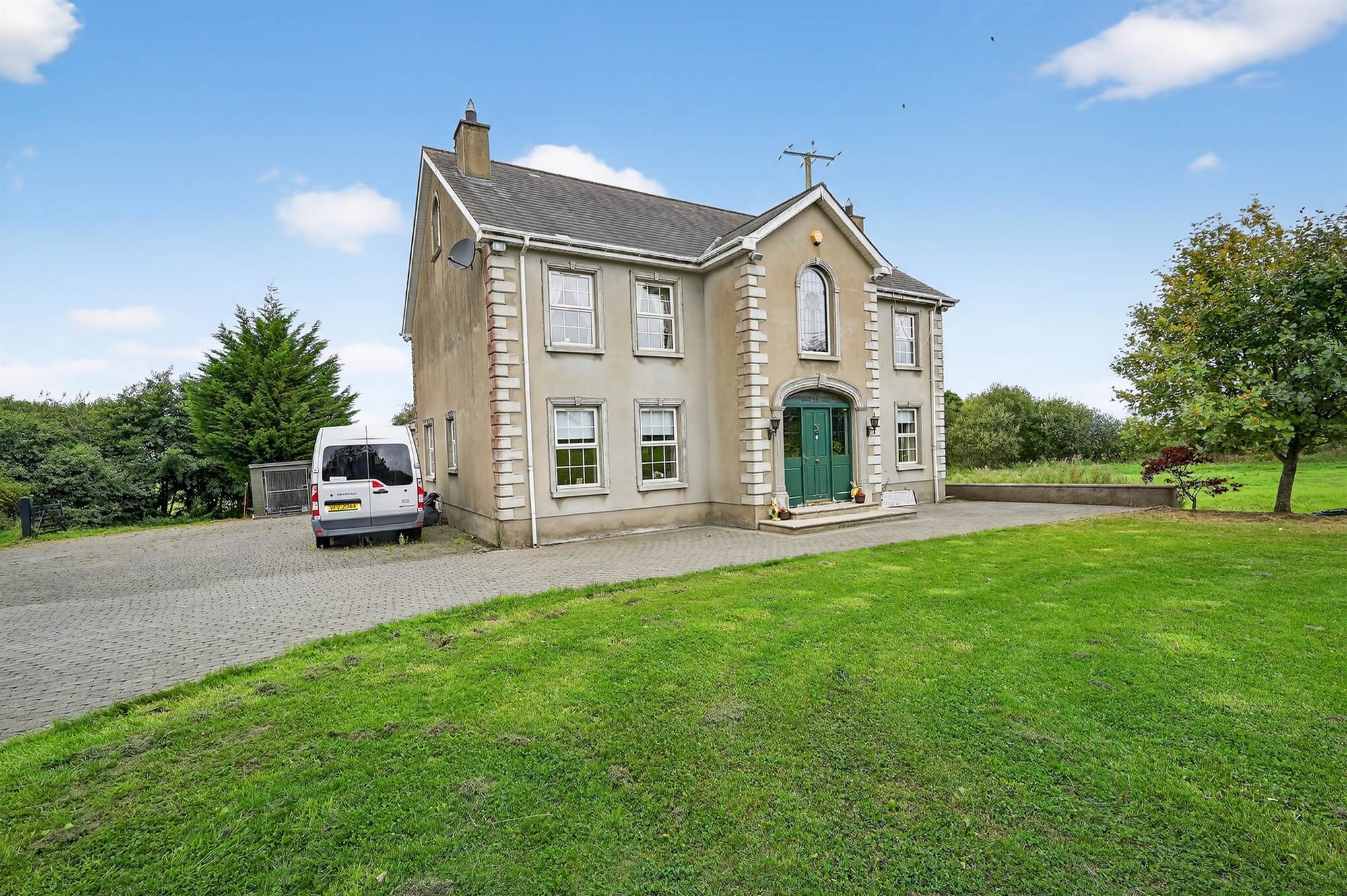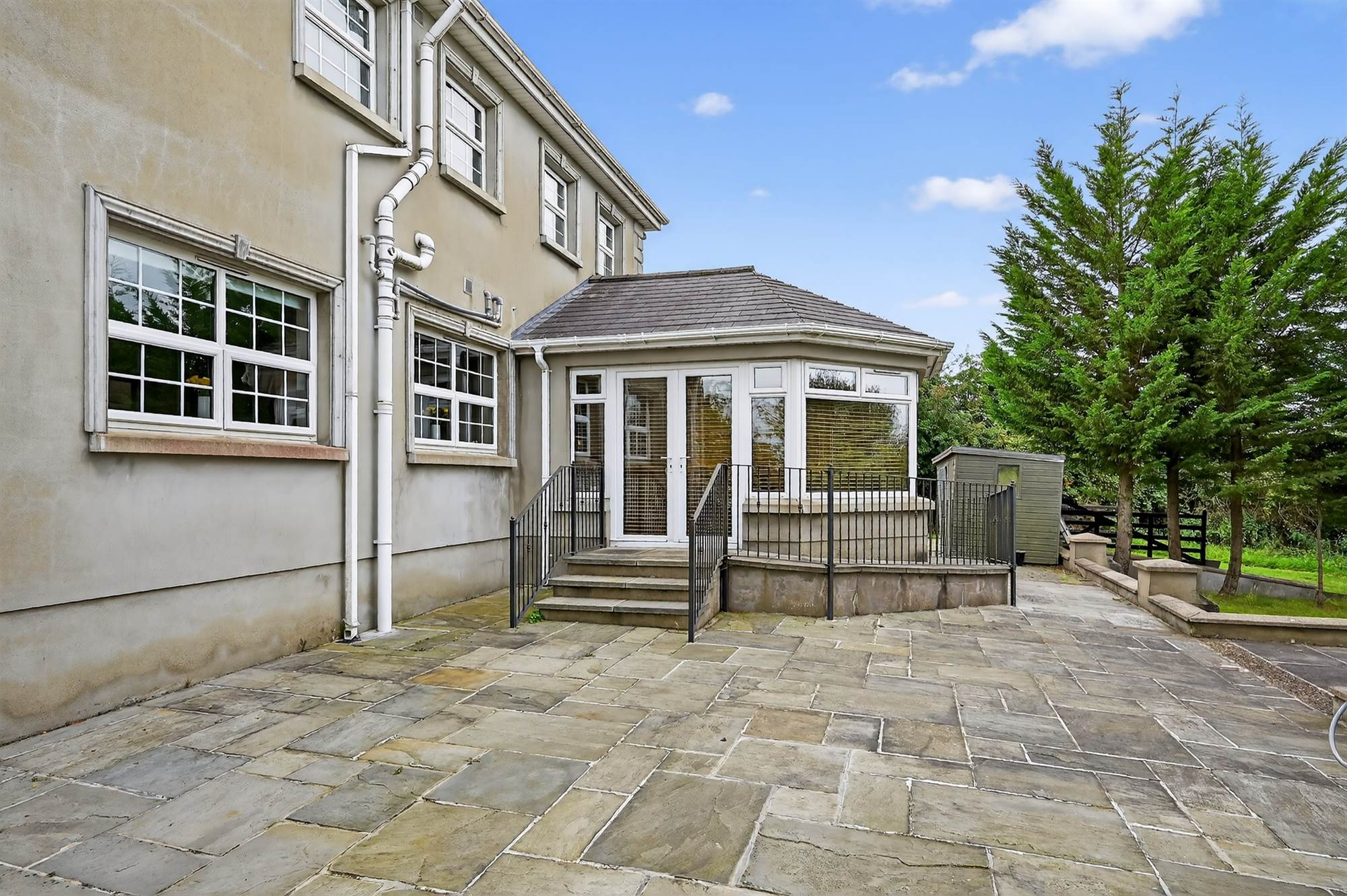 Stone entrance pillars with electric gates to laneway leading to ample parking. Generous front and rear gardens in lawns with mature hedging and extensive terrace. Total site approximately 3 acres.