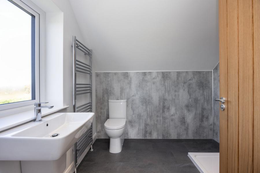 Plumbed low flush W/C, wash hand basin and shower. Low voltage downlights. Extractor fan. Gable side window.
