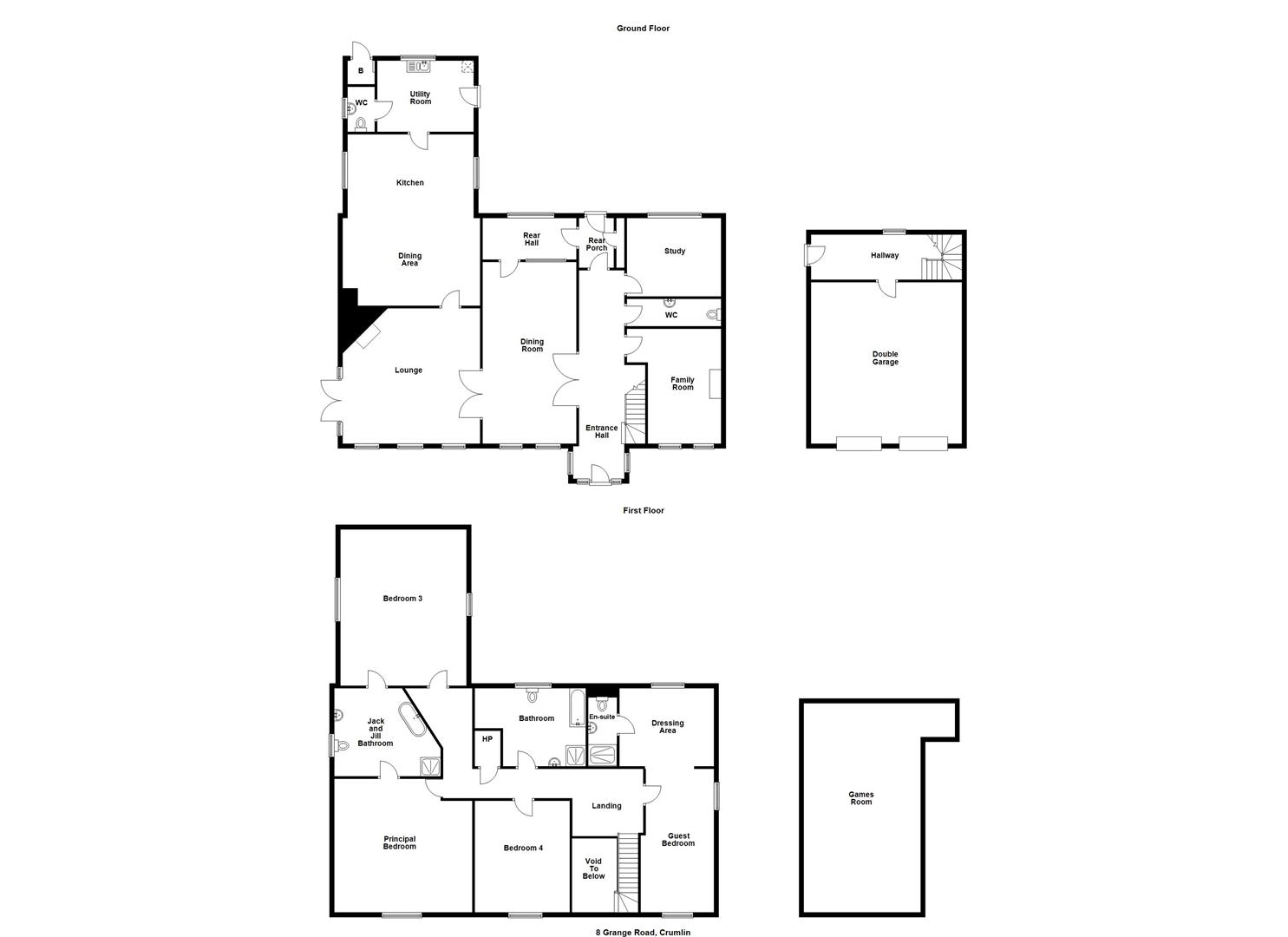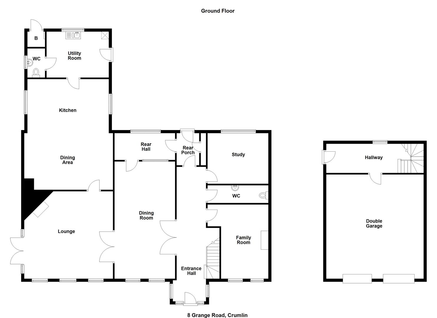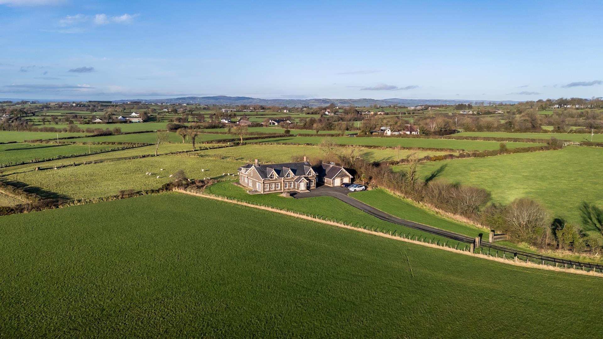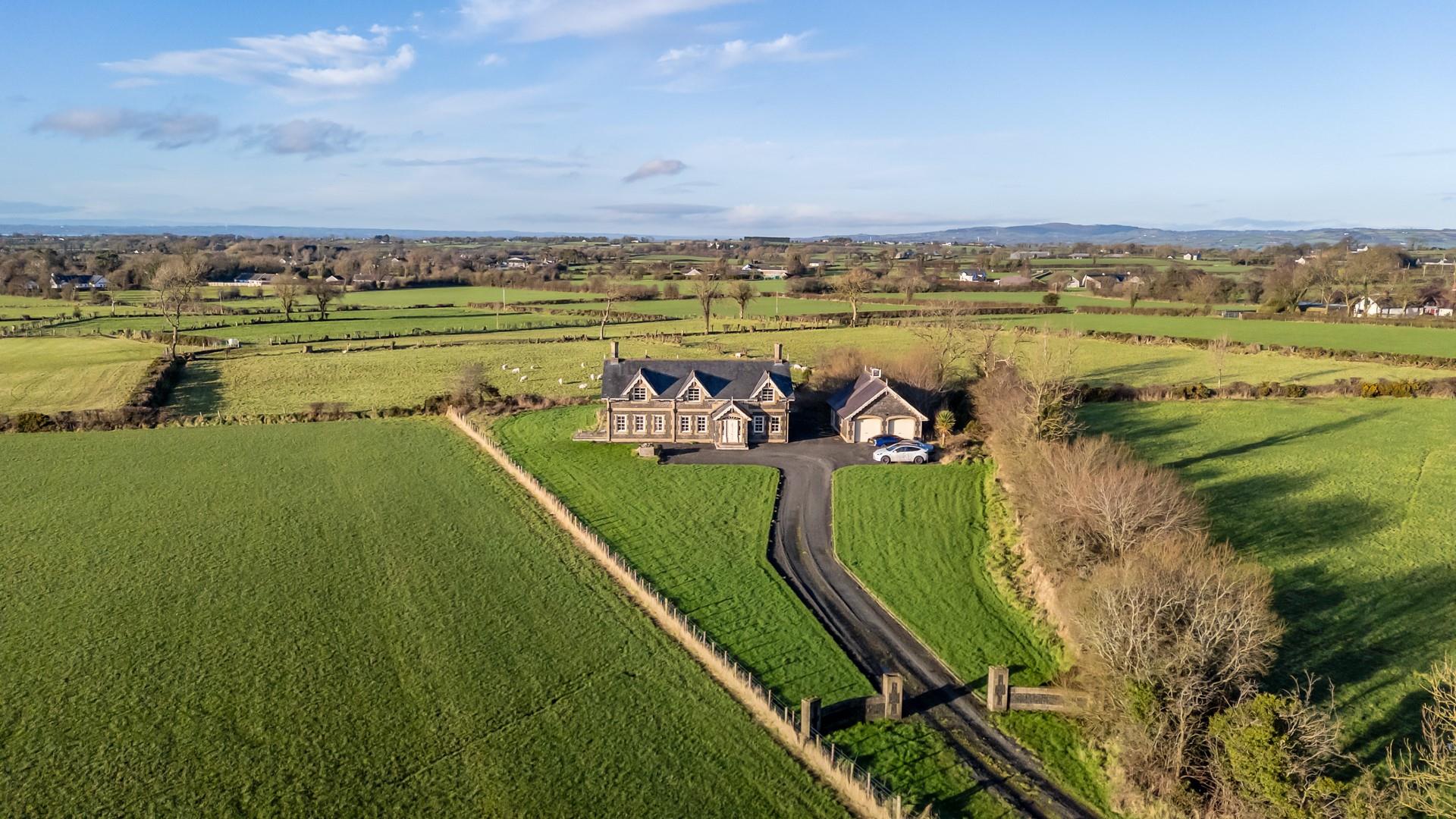 Impressive, four bedroom/four+ reception, detached family home, extending to circa 4,275 sq ft, plus garaging, occupying a prime site with private driveway/entrance lane, situated on Grange Road, Nutts Corner, Crumlin. The property comprises entrance hall, lounge, family room, dining room, study, kitchen with informal dining area, utility room, two furnished cloakrooms, four well-proportioned bedrooms, to include two with en suite shower rooms, and separate family bathroom with white, four piece suite.Externally, the property enjoys generous sized private driveway, double garage with room above, and garden area to front, side and rear.Other attributes include oil heating, underfloor heating (ground floor), Beam vacuum system, PVC double glazing, and delightful rural views.Early viewing highly recommended.