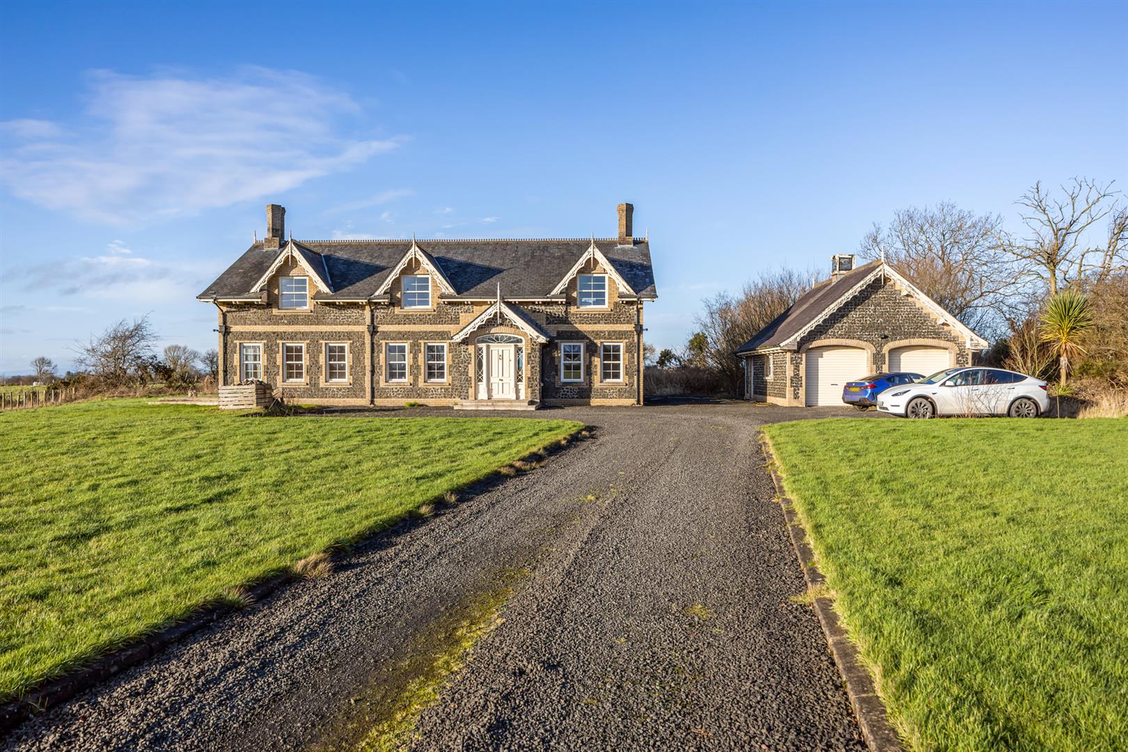 Generous sized private driveway finished in stone.