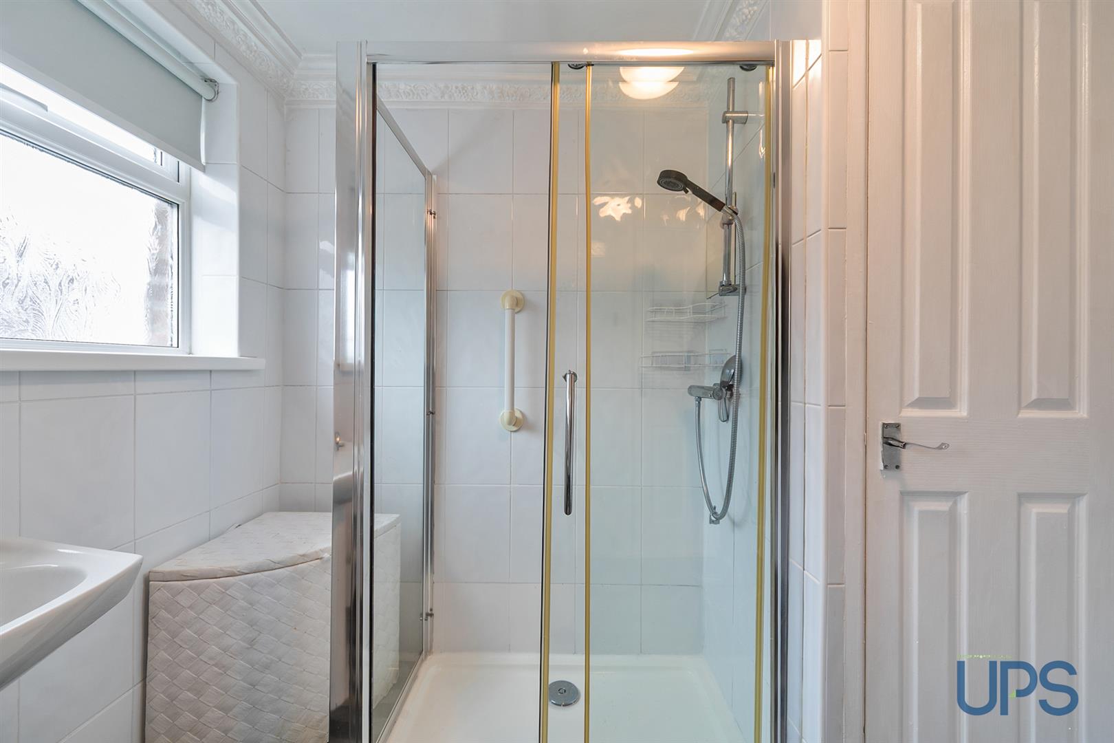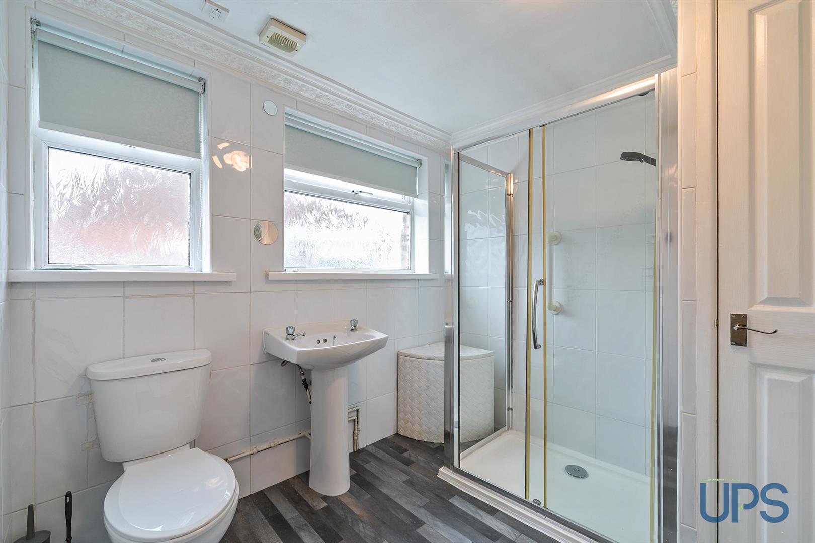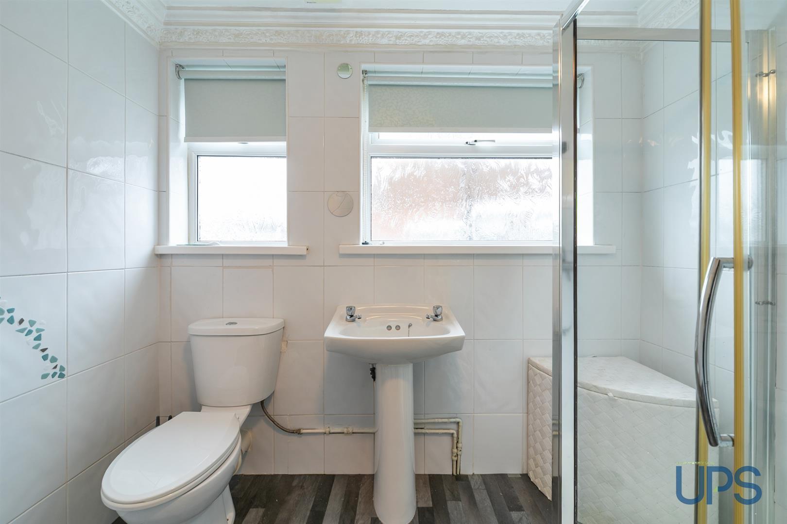 Fully tiled shower cubicle, thermostatically controlled shower unit, pedestal wash hand basin, low flush w.c., tiling, gas boiler.