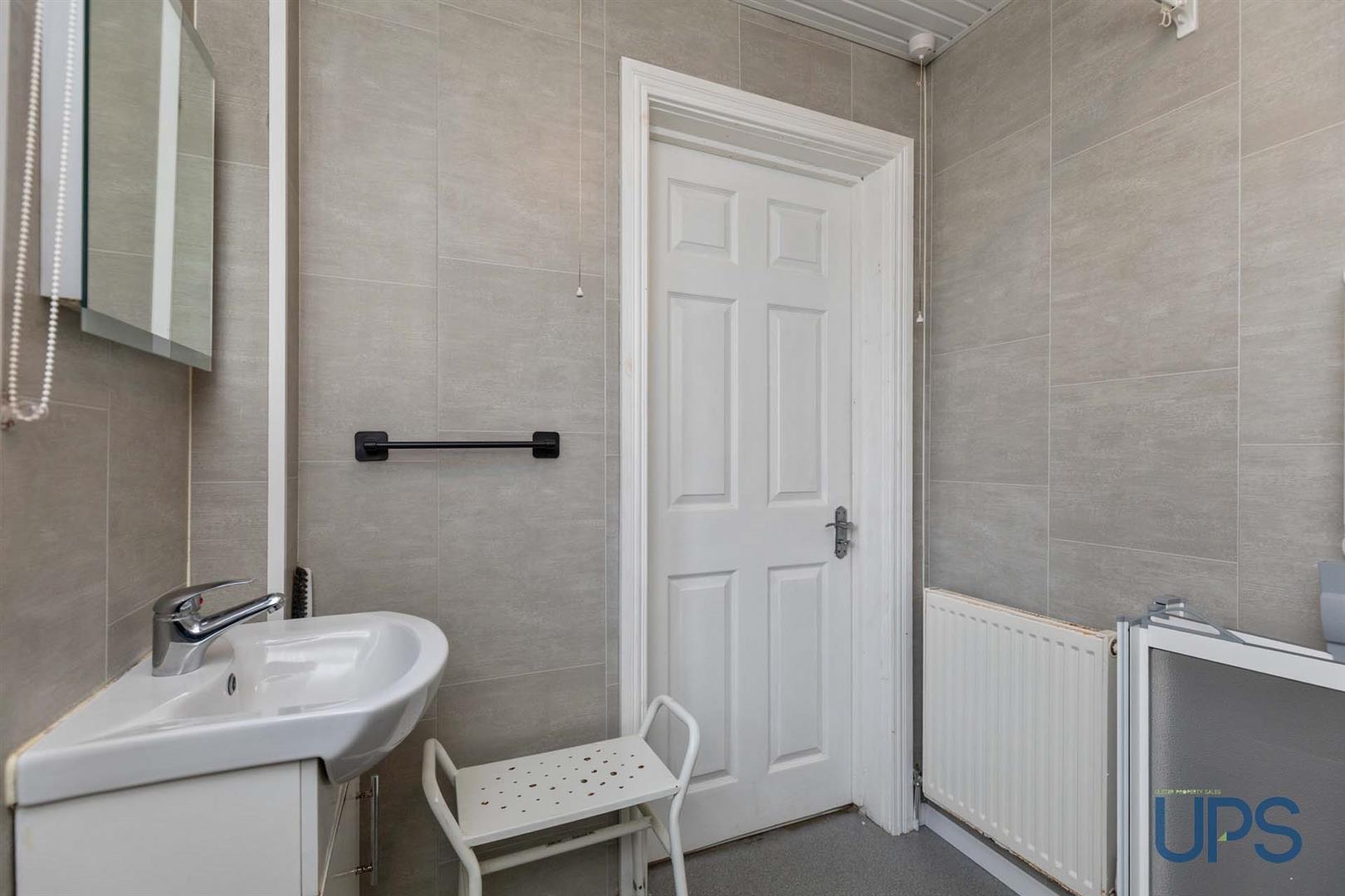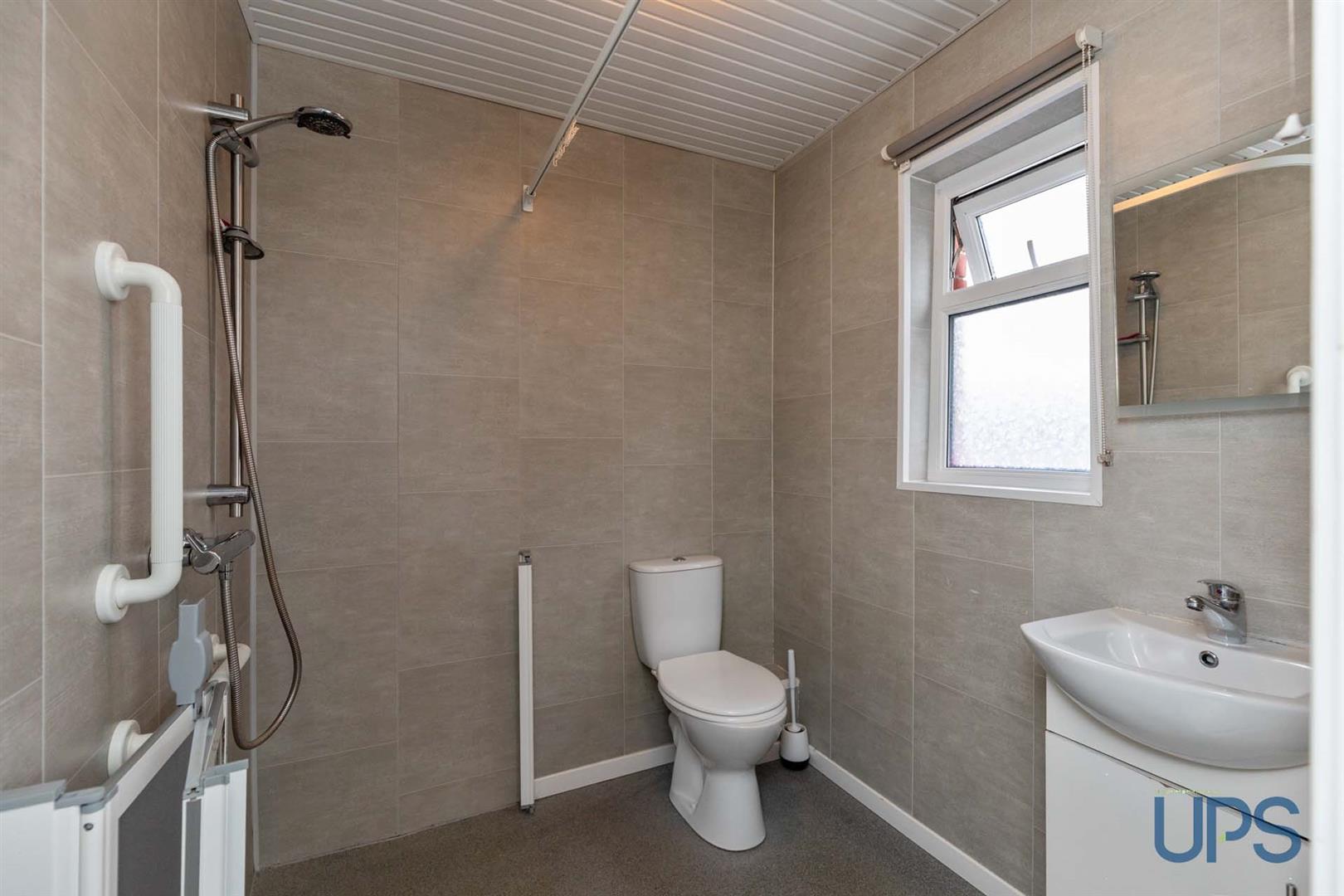 Classic bathroom suite to wet room standard, thermostatically controlled shower unit, vanity unit, low flush wc, double panelled radiator, pvc walls & ceiling, towel rail, extractor fan.