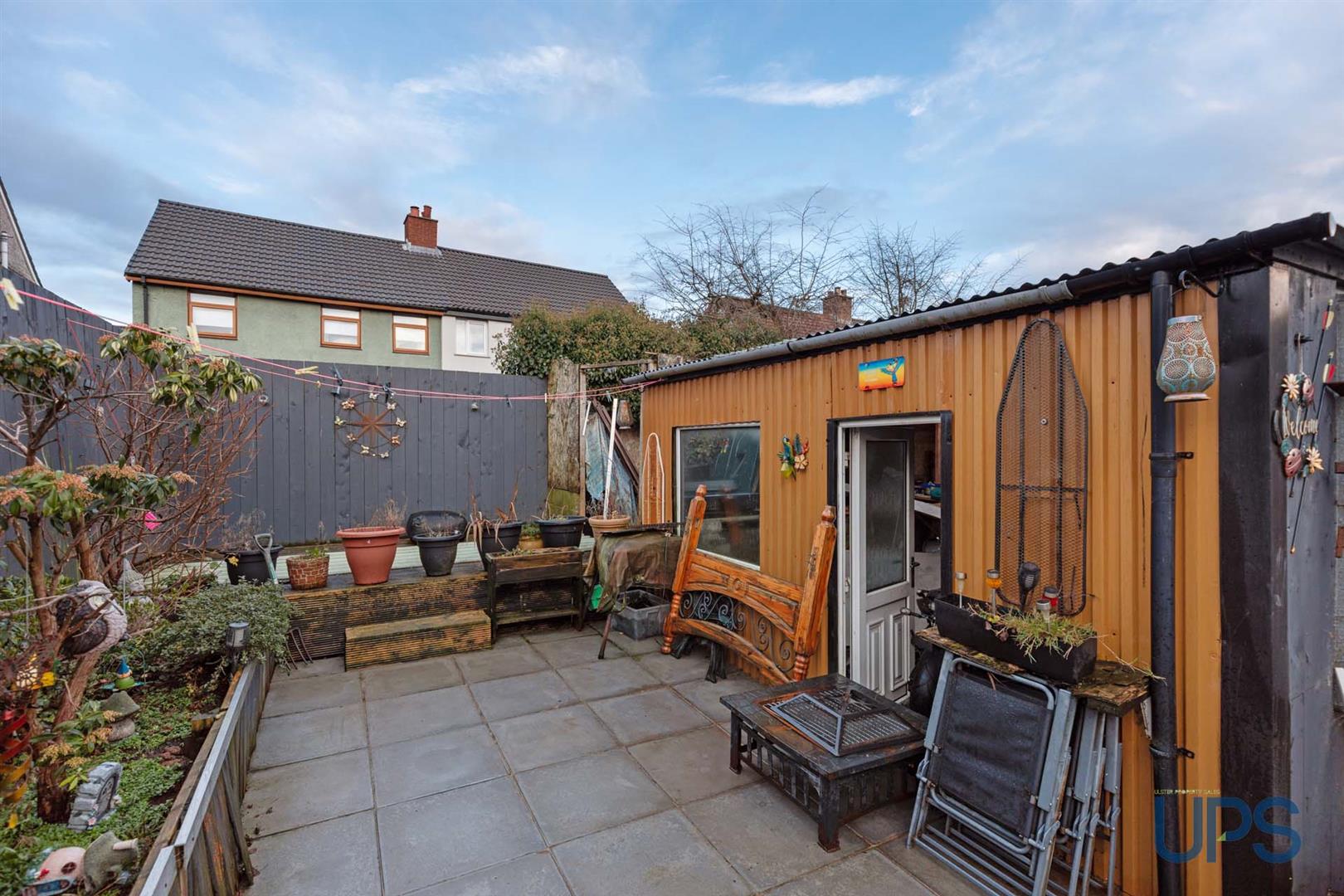 Front garden in mature lawn and hedging, offering off street carparking. Hard landscaped rear garden with decked patio area, garden shed.