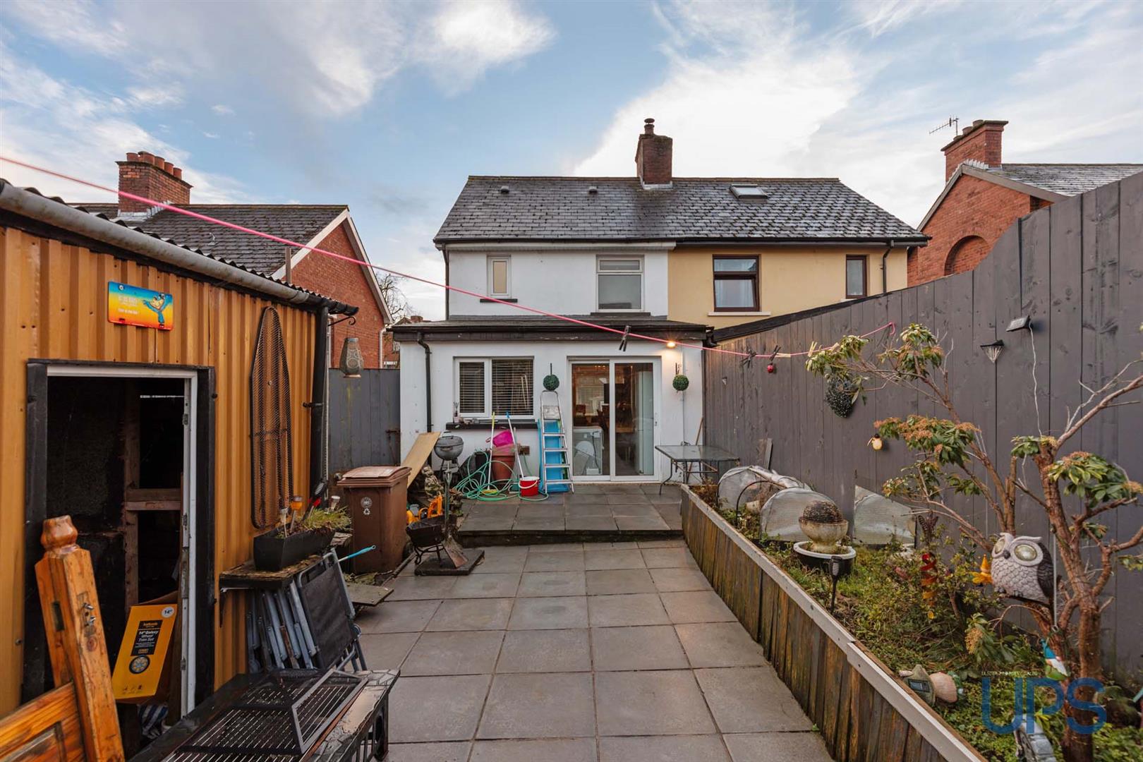Holding a mature level site moments from the Oldpark Road in this sought after tree lined Road this attractive red brick semi detached villa will have immediate appeal. The extended interior comprises 3 bedrooms, spacious through lounge, extended fitted kitchen incorporating built-in double oven and hob and white bathroom suite. The dwelling further offers uPvc double glazed windows & doors, gas central heating and downstairs shower room finished to a wet room standard. Off street parking and private mature gardens with delightful aspect combines with a most convenient location to make this the perfect family home - Immediate inspection highly recommended.