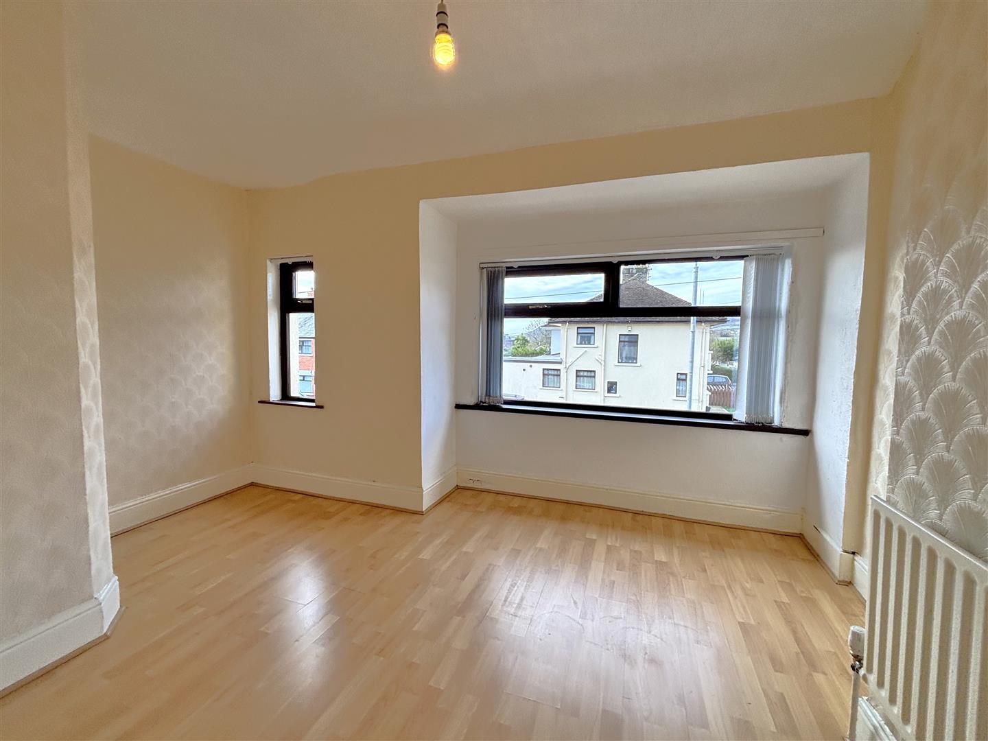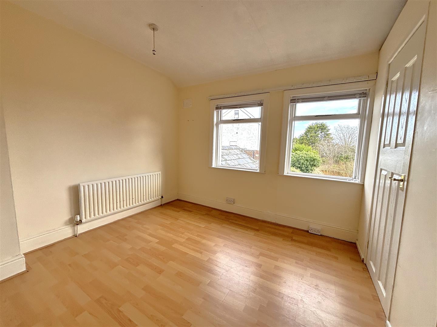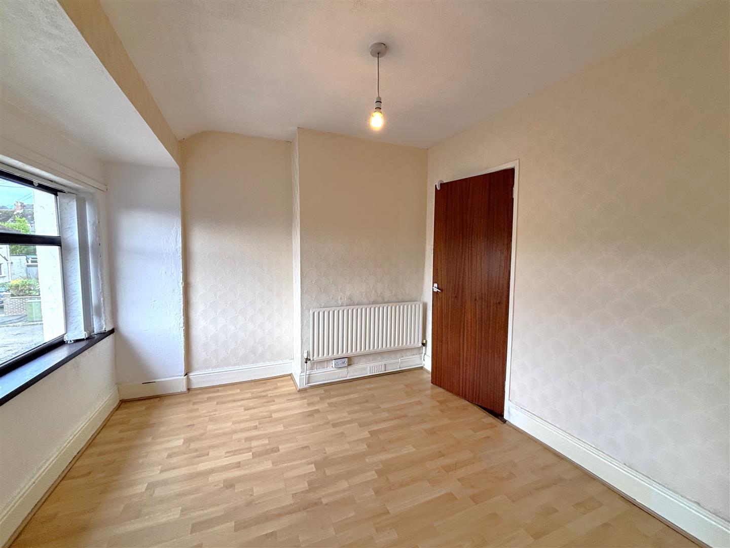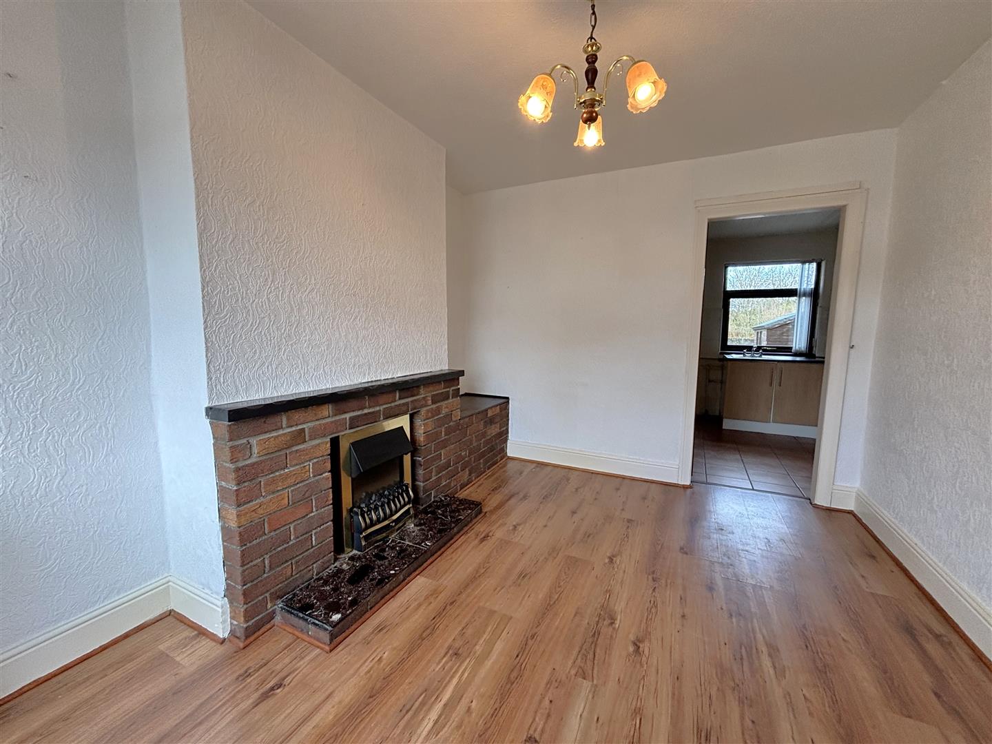 Attractive brick fireplace, wood laminate floor, double panelled radiator.
