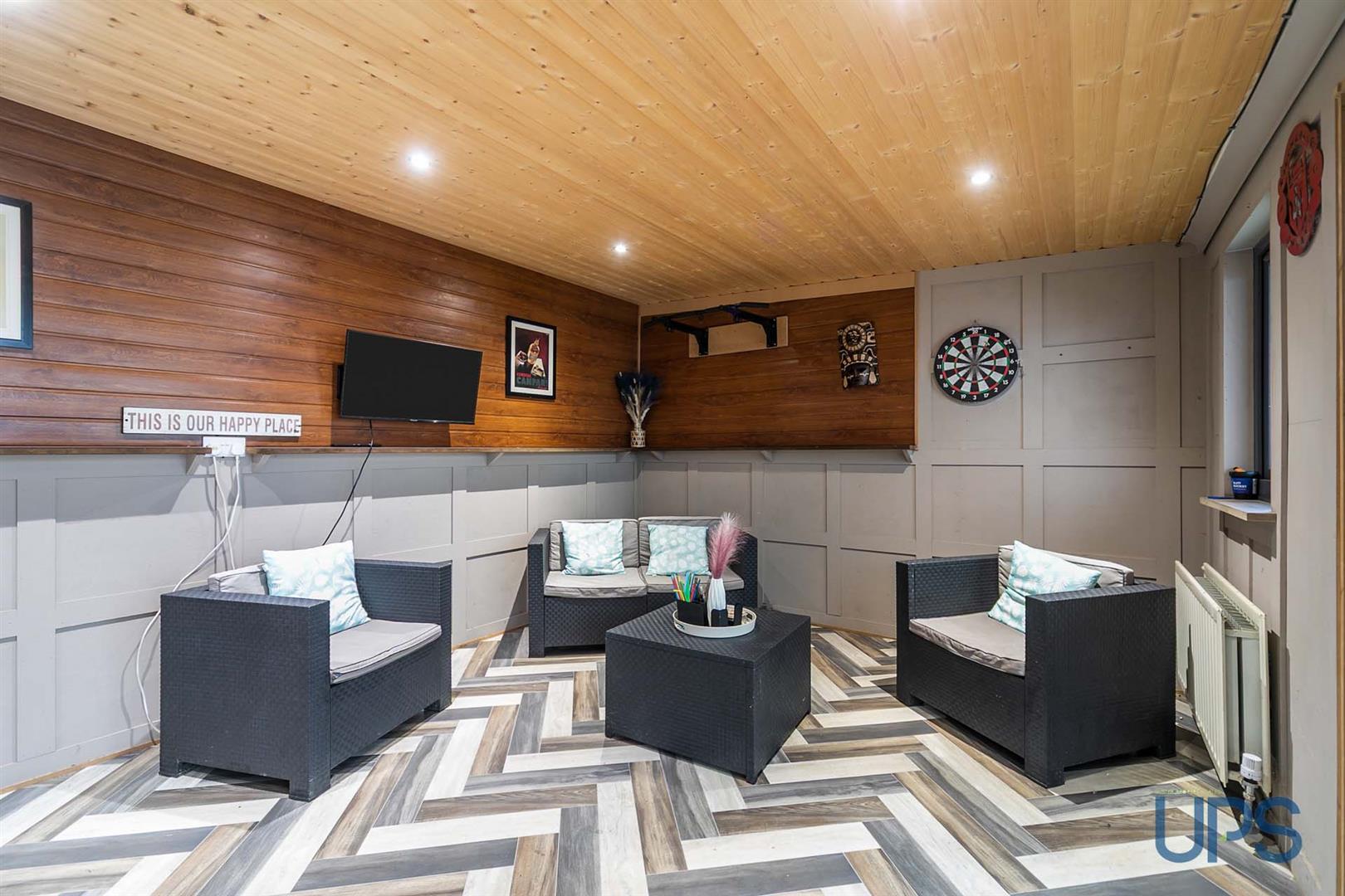 Wood laminate floor, double panelled radiator, uPvc double glazed patio doors.