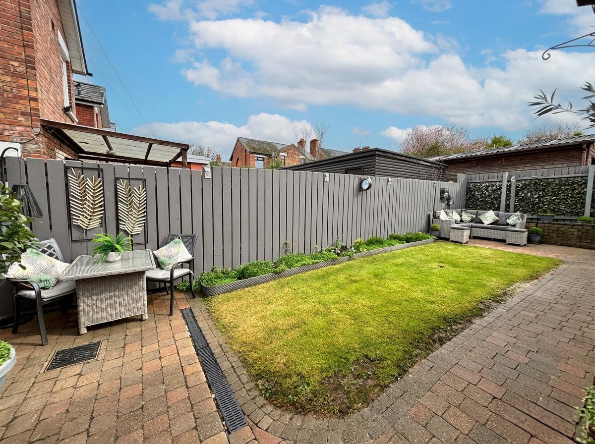 A refurbished semi-detached residence modernised to the highest possible standard by the present owner creating a stunning family home. The modern interior comprises 3 bedrooms, 2 reception rooms with lounge into bay, living room with multi-fuel stove, superb modern fitted kitchen incorporating built-in double oven and ceramic hob, integrated dish washer and fully tiled luxury white family bathroom suite. The dwelling further offers uPvc double glazed windows, gas fired central heating, pvc fascia and eaves, extensive use of wood laminate and ceramic floor coverings. Landscaped gardens front and private rear with patio area's, brick paver car parking detached garage combines with the highest presentation to make this the perfect family home, with little or no maintence worries in this sought after location - Early Viewing is highly recommended.
