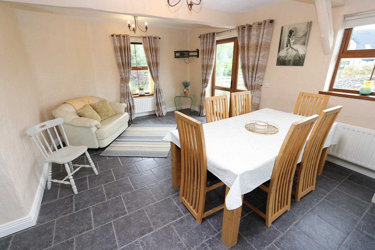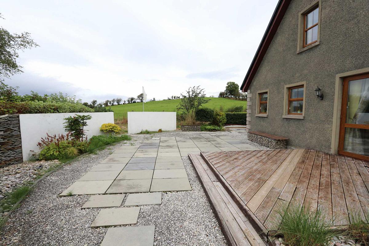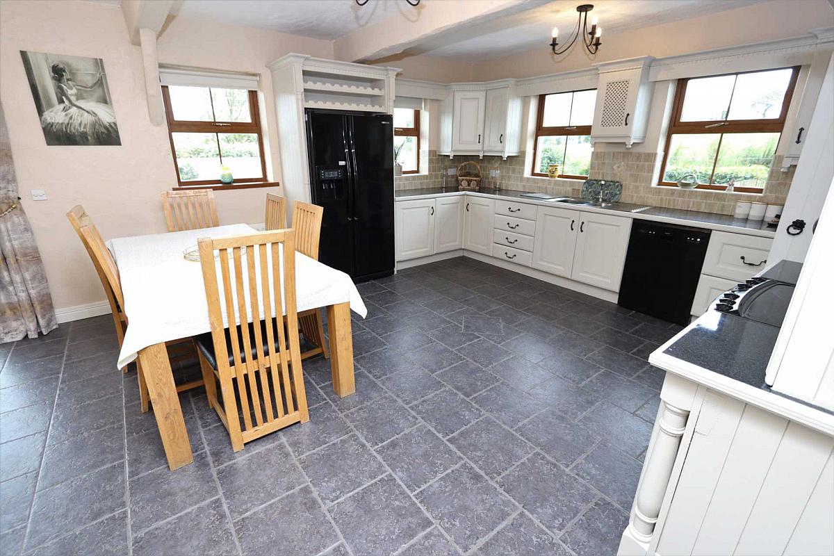 The large entrance hall leads to an excellent open plan kitchen/dining space flooded with natural light and views of the gardens, with a mix of high and low level units, dining space and snug area with access to the outdoor decking, making this a great entertainment area. There is a large living room with cosy open fire, four spacious bedrooms, including the master with an ensuite and two with built in wardrobes, main family bathroom with bath and shower, plus a utility and WC.