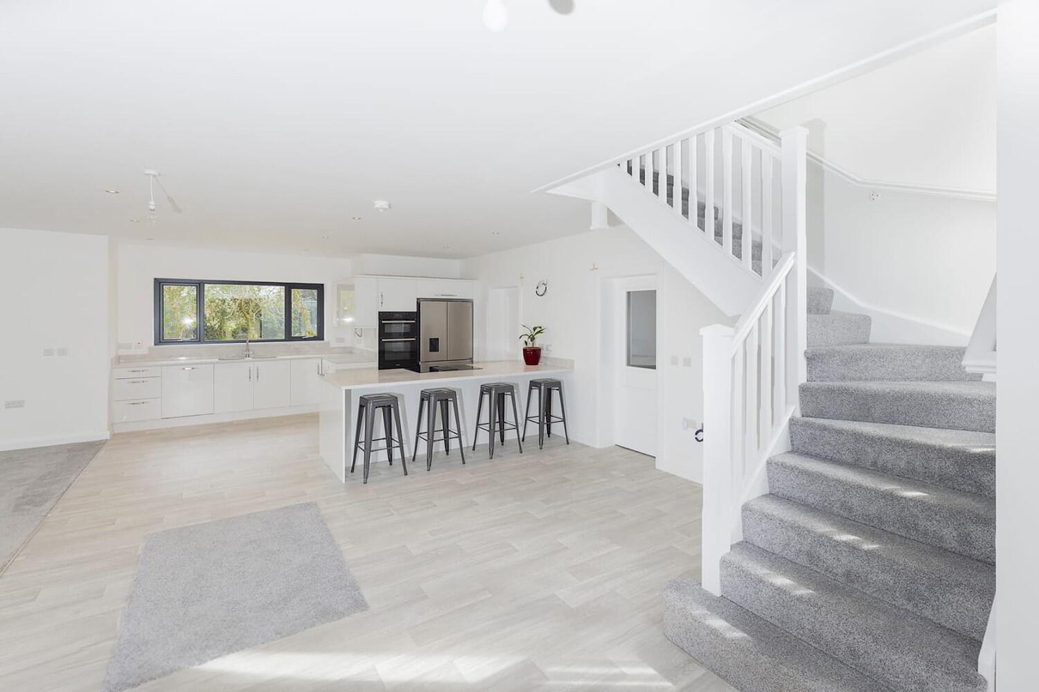 Front door to open plan kitchen/living/dining area, utility room, reception room/5th bedroom & bathroom