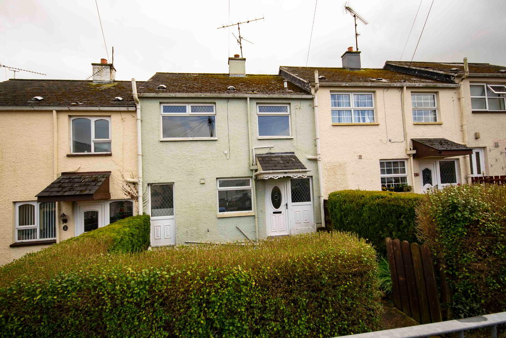 Three bedroom terraced house for let in Hunters Crescent, Omagh with O.F.C.H. and open fire, unfurnished, garden to rear, paved patio to front