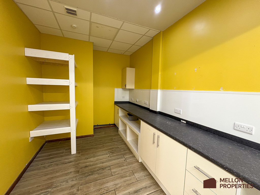 The unit is open plan throughout, with a staff/prep kitchen to the rear, including a range of fitted units and a toilet. The flooring throughout is tiled with wood affect and the ceiling is suspended with LED lighting.