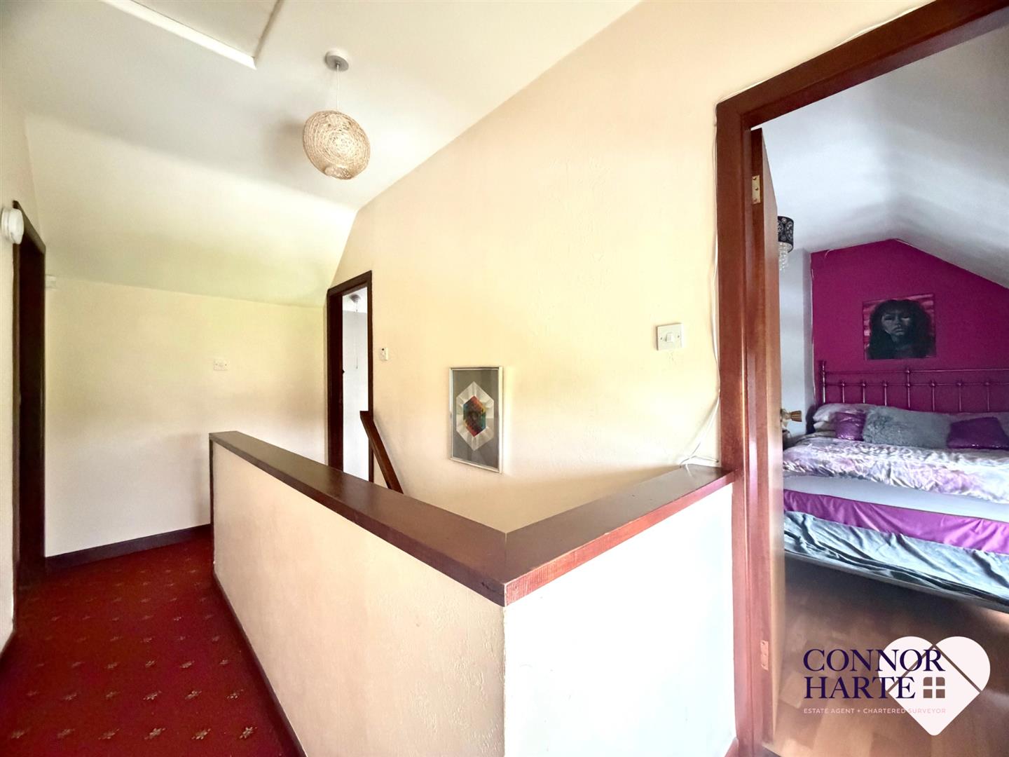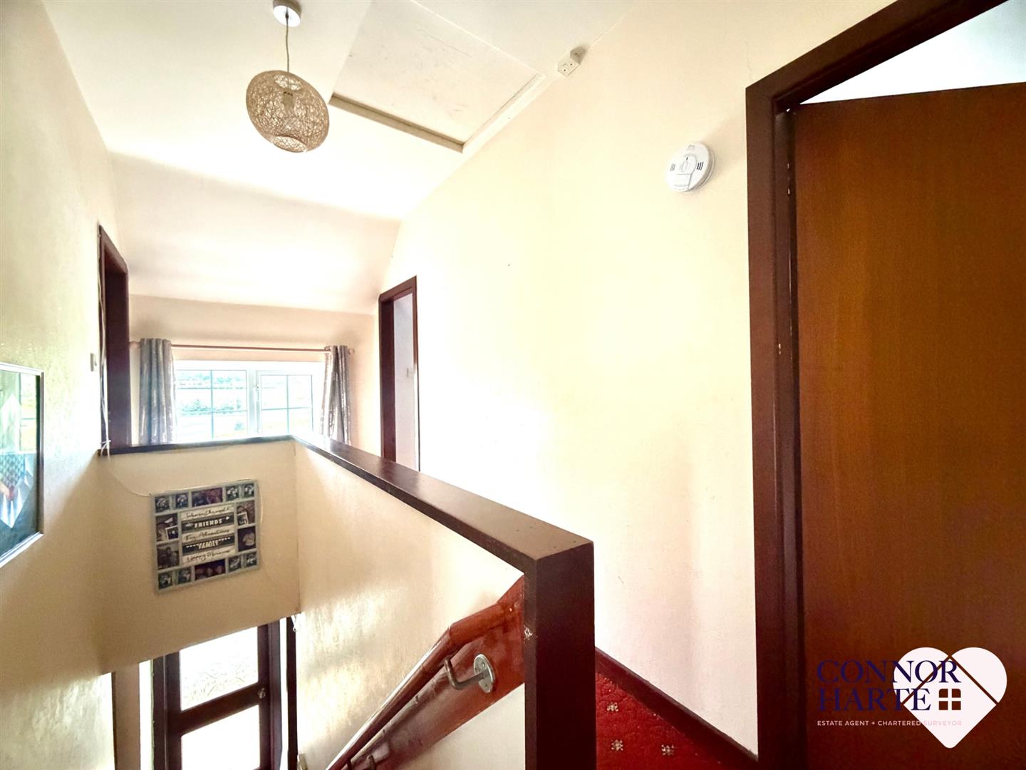 Carpeted. Alarm panel. Staircase carpeted.