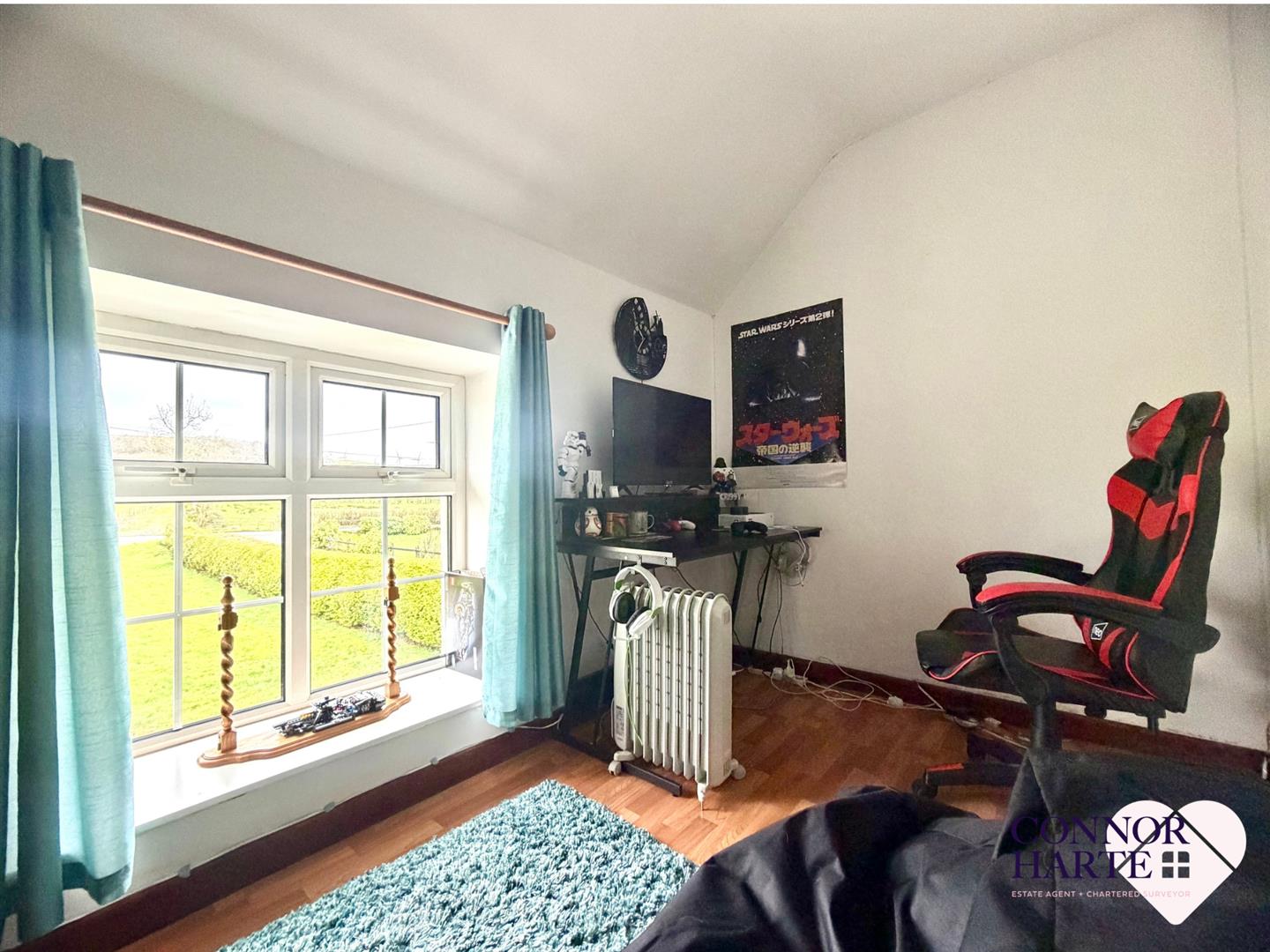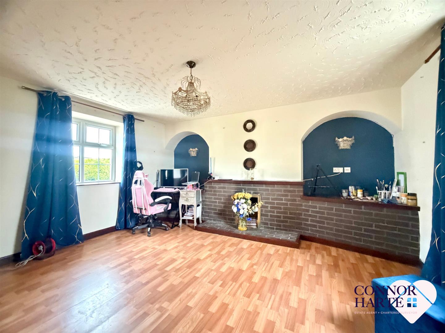 Laminate wooden floor. Power points. (Currently used as a home office)