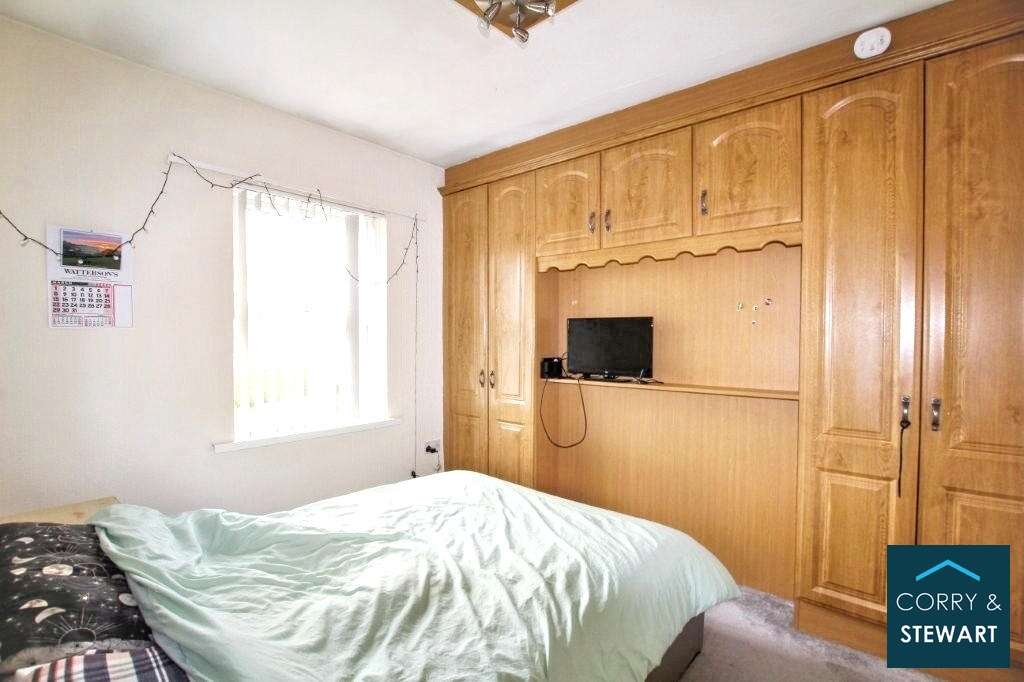8’08” (Longest Point) x 10’02” (Widest Point) Carpet Flooring. Fitted Units.