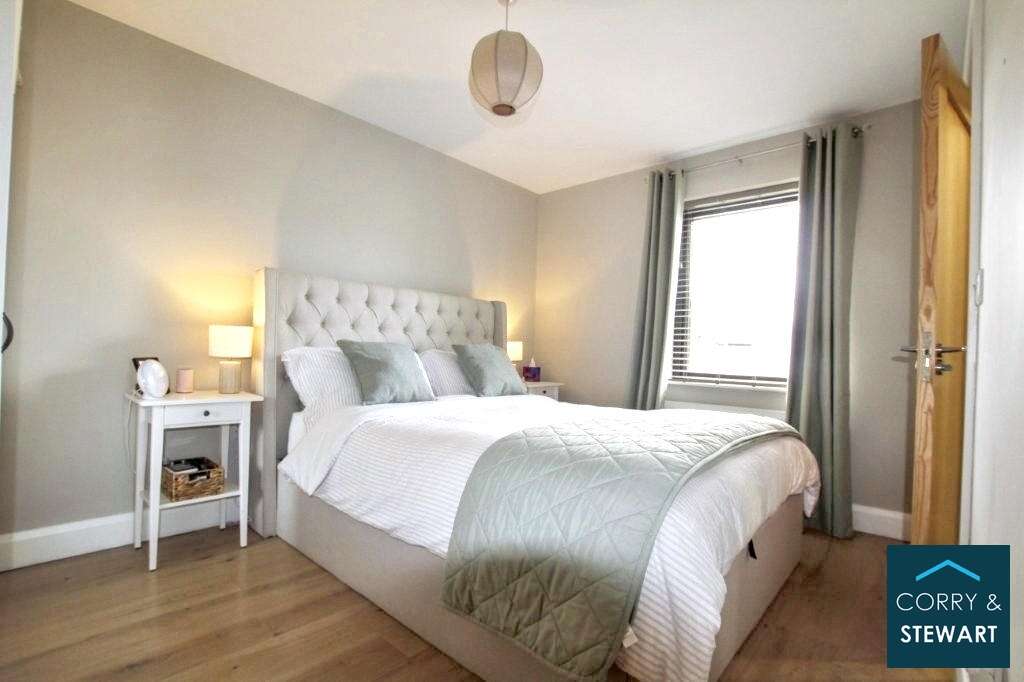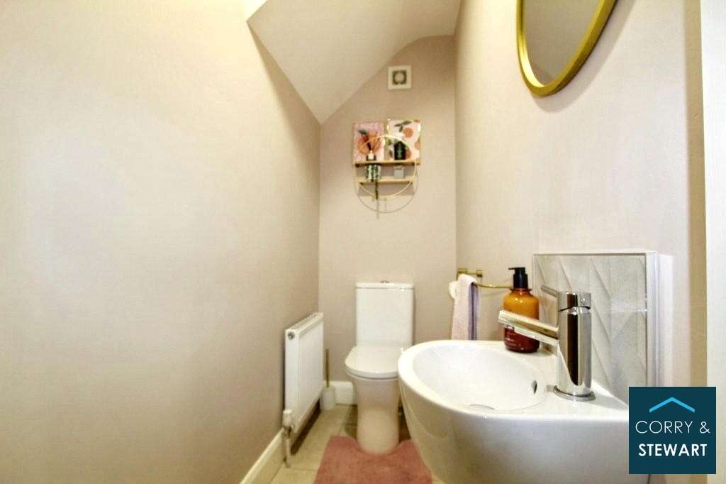 8’07” (Longest Point) x 3’03’’ (Widest Point) Part Tiled Walls. Tiled Flooring. Fitted Vanity Unit With Basin. Toilet. Heated Towel Rail. Shower. Recessed Lighting.
