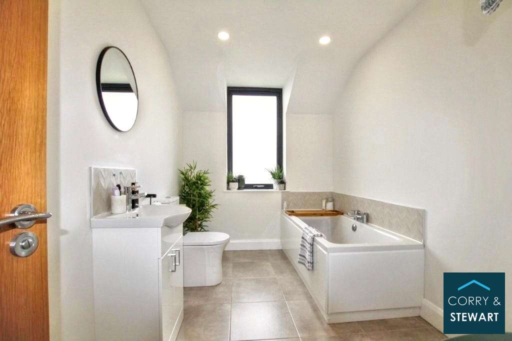 11’05” (Longest Point) x 6’11” (Widest Point) Part Tiled Walls. Tiled Flooring. Toilet. White Suite. Fitted Vanity Unit With Basin. Bath. Separate Shower. Recessed Lighting. Heated Towel Rail.