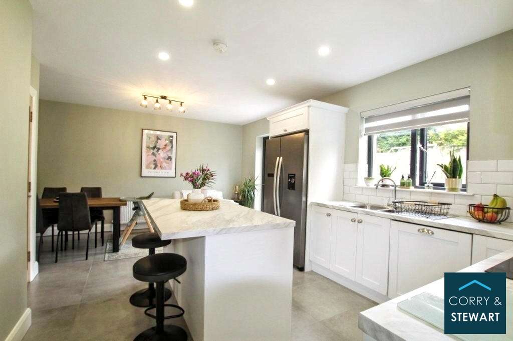 19’03” (Longest Point) x 14’0” (Widest Point) Fitted High And Low Level Units. Extractor Fan. Fitted Island Unit With Breakfast Bar. Tiled Flooring. Part Tiled Walls. Integrated Dish Washer. Freestanding Fridge Freezer. Integrated Electric Oven And Hob. Recessed Lighting. S.S Sink. Patio Doors Leading To Rear Garden And Patio Area.