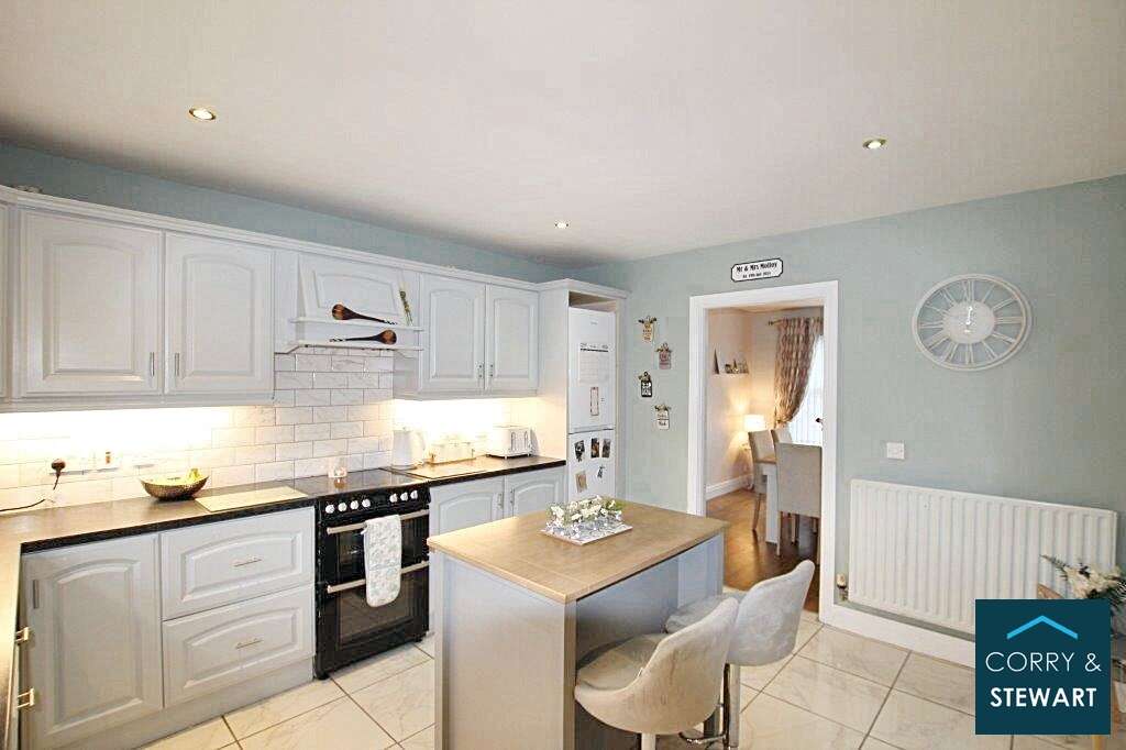 Kitchen/Dinette: 11’5” (Longest Point) x 13’1” (Widest Point) Fitted High And Low Level Units. Extractor Fan. Tiled Flooring. Partially Tiled Walls. Freestanding Fridge Freezer And Freestanding Electric Cooker. Plumbed For Dishwasher. T.V And Telephone Points. SS Sink. Recessed And Under Unit Lighting.