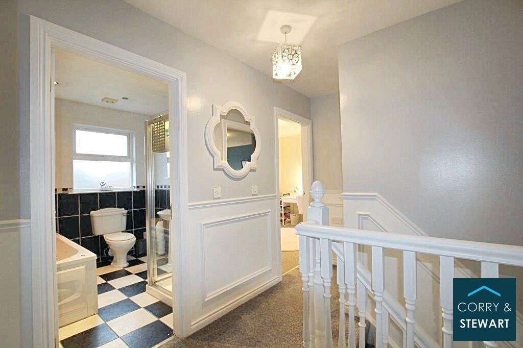 Landing: 10’8” (Longest Point) x 8’3” (Widest Point) Part Wooden Panelled Walls. Carpet Flooring. Access To Roof Space. Linen Cupboard Off.