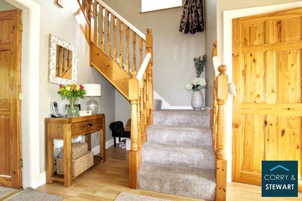 12’'05” (Longest Point) x 6’04” (Widest Point) Mahogany Exterior Door With Glazed Panels And Side Panels. Laminate Flooring. Telephone Point. Carpeted Pine Staircase. W.C Off.