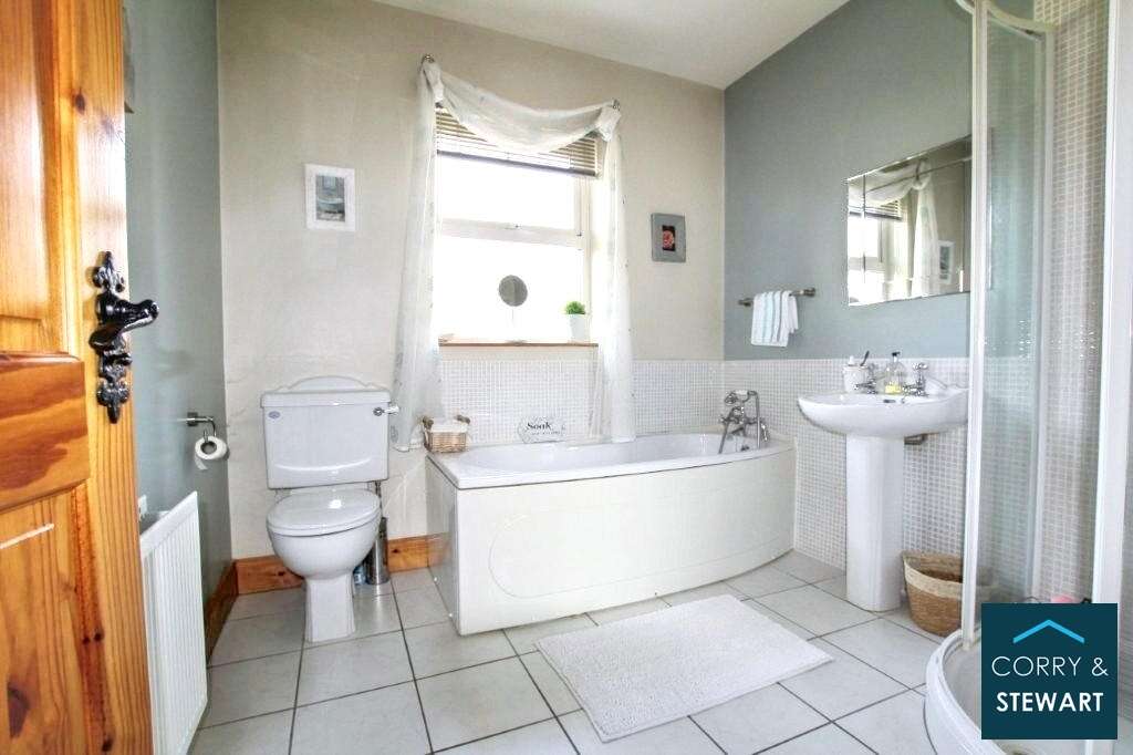 8’02” (Longest Point) x 7’10” (Widest Point) Tiled Flooring. Part Tiled Walls. Toilet And Wash Hand Basin. White Suite. Bath. Separate Electric Shower. Recessed Lighting.