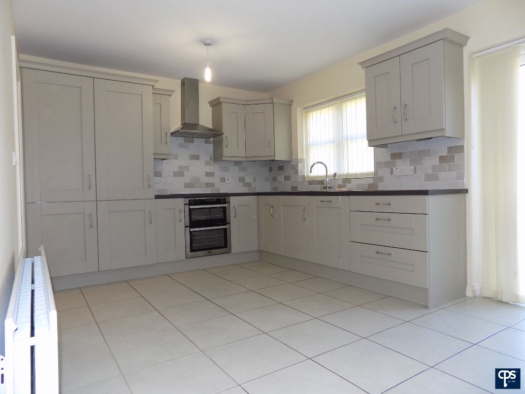Spacious kitchen and casual dining area with a stunning range of high and low level units to include integrated electric oven, hobs and extractor fan. Dishwasher. Tile flooring with partial wall tiling. Double patio doors leading to rear garden.