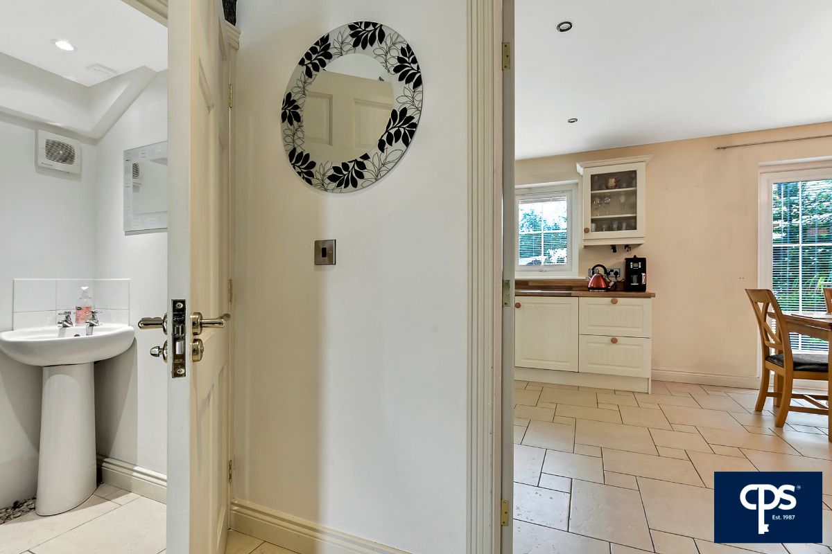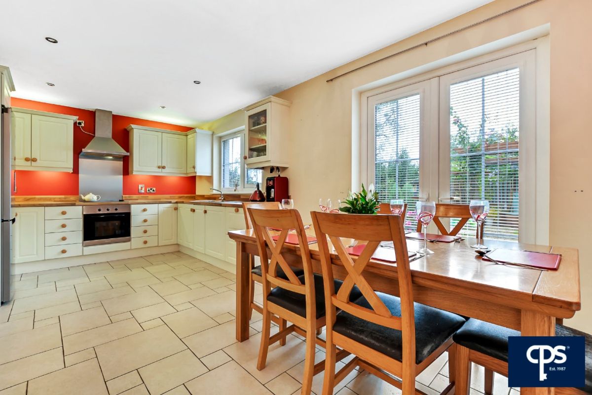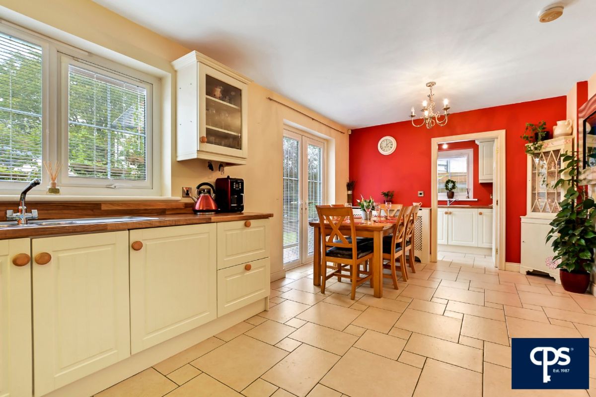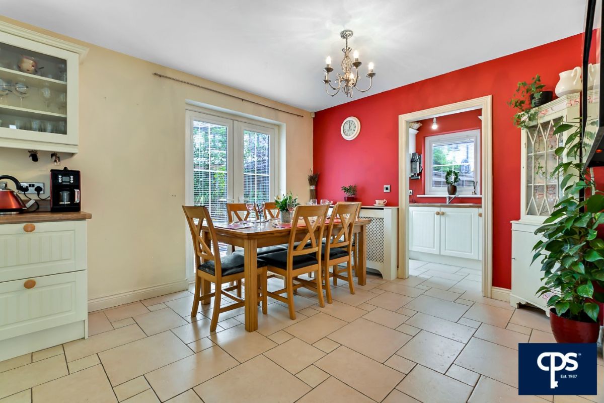 Spacious kitchen and casual dining area with a stunning range of high and low level units. Integrated appliances to include, electric oven, hobs & extractor fan, dishwasher. Double Patio doors opening from dining area to stunning rear gardens and patio area. Tile flooring.