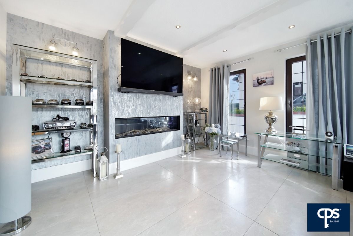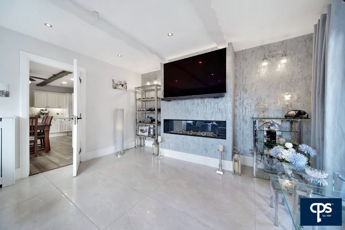 Located off the kitchen / dining area this everyday living room is filled with natural light via bi folding patio doors. Complete with tile flooring with electric underflooring heating, inset remote control operated electric fire and Philips hue bluetooth spotlighting.