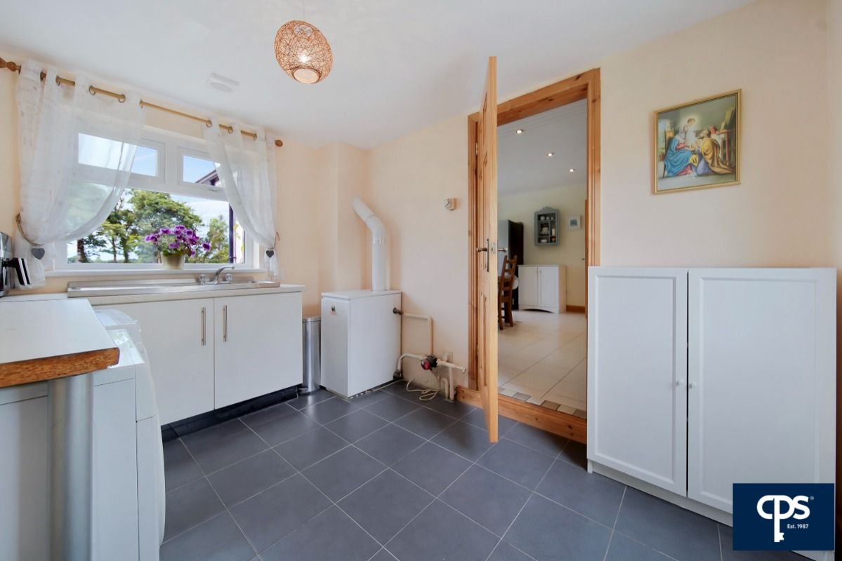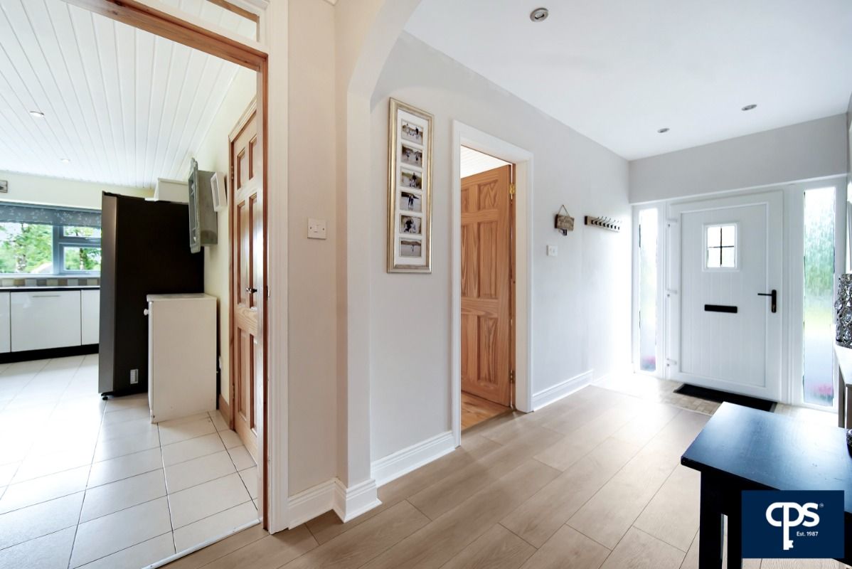 Externally the home is complete with a tarmac driveway, mature landscape gardens, rear patio area, boundary fencing and stone entrance pillars. What is more, this home is complete with oil fired central heating, uPVC double glazing, an integral garage and has an additional paddock to the side of the property.