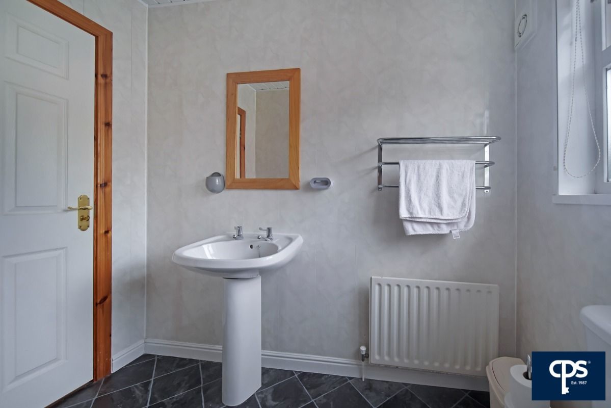 Spacious kitchen and casual dining area complete with an excellent range of high and low level units. Stainless steel sink and drainer. Integrated electric oven, hobs & extractor fan. Complete with tile flooring. Upvc external door leading to rear of property.