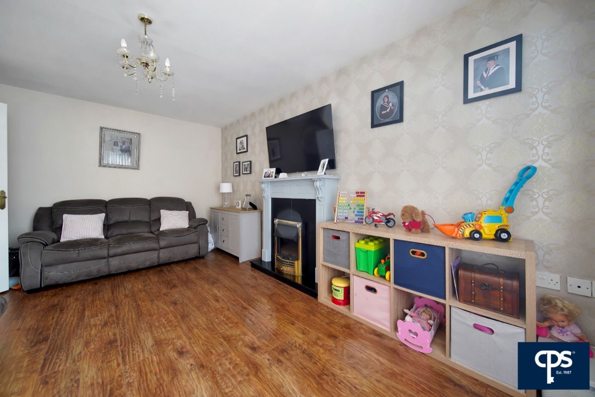 Excellent family living room with feature fireplace with inset electric fire. Laminate wooden flooring.