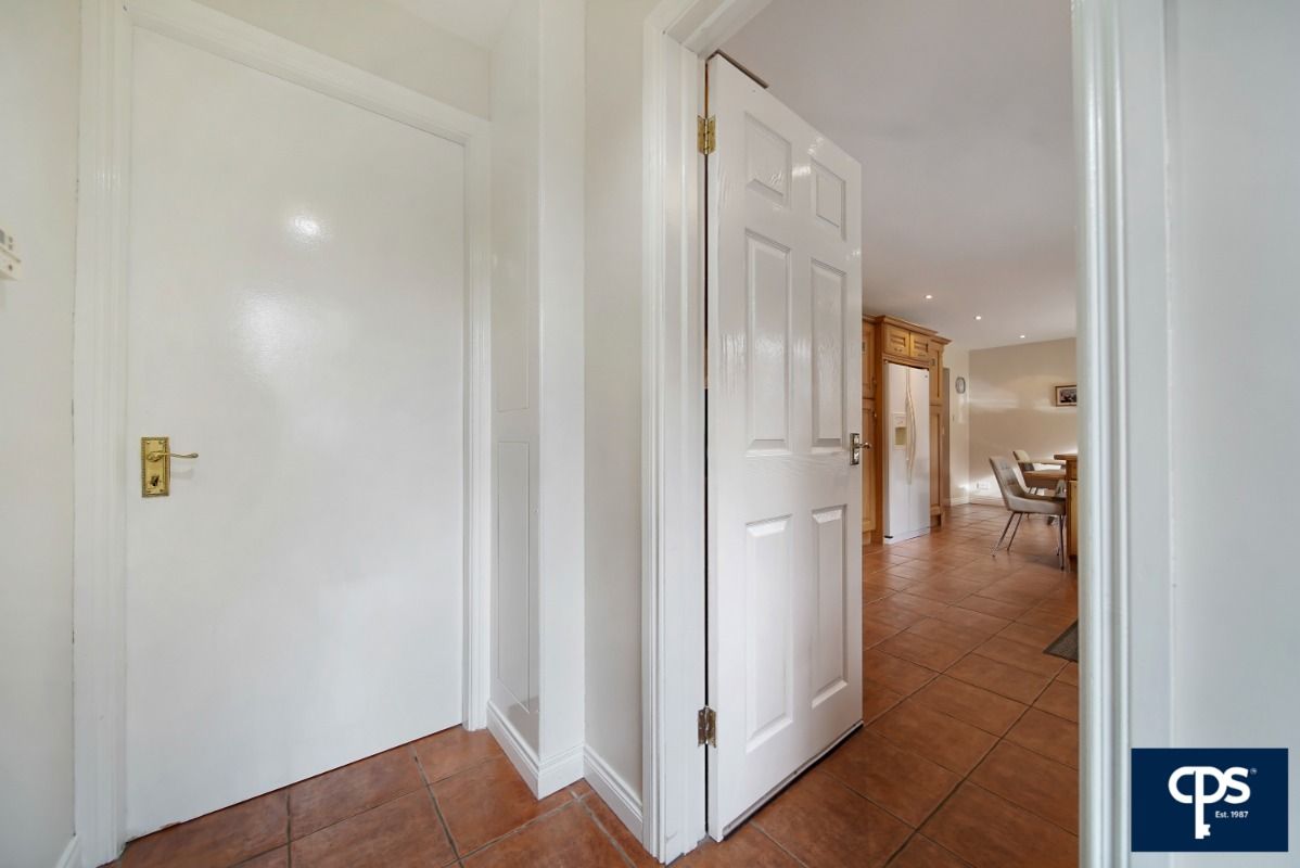 On the first floor, the property boasts three excellent double bedrooms and a well-proportioned single room. The master bedroom benefits from an en-suite and walk-in wardrobe. A stylish family bathroom and a spacious hot press with fitted shelving provide additional convenience and storage.
