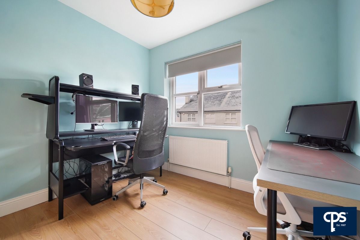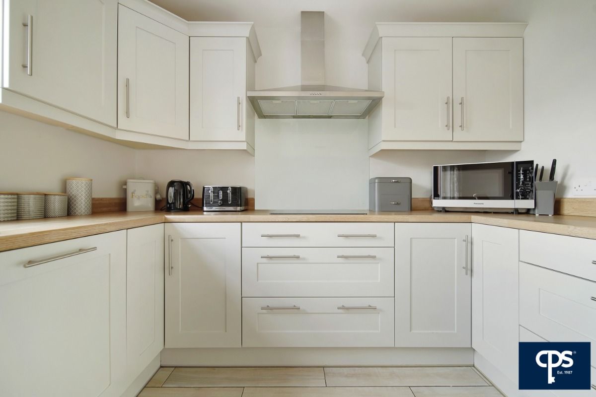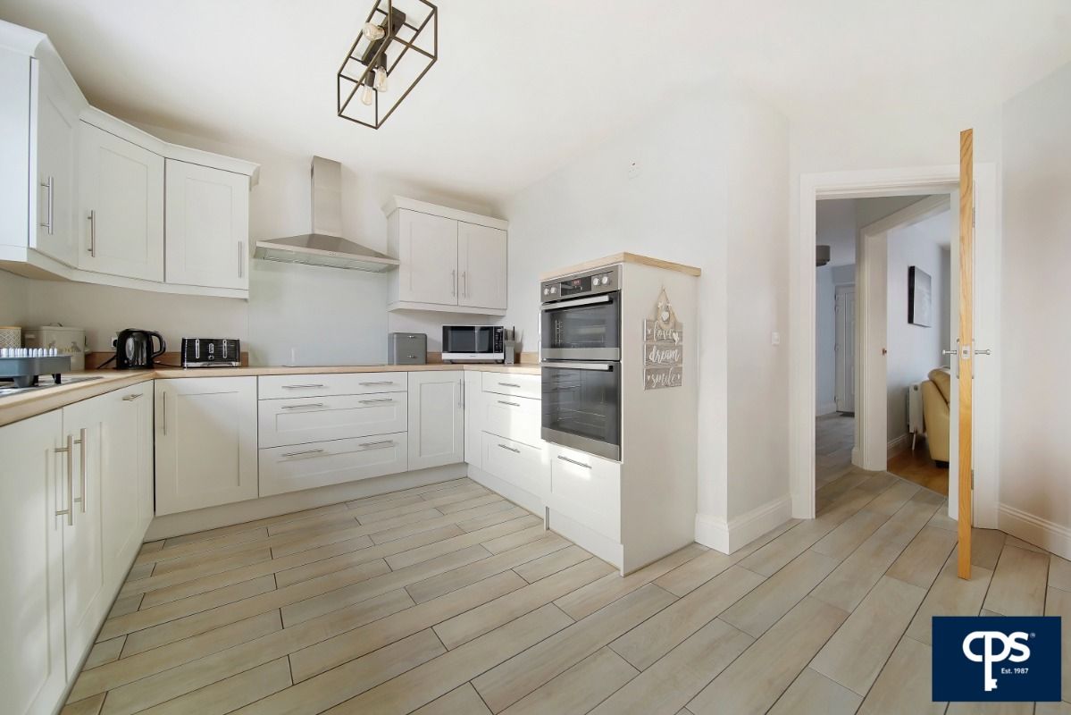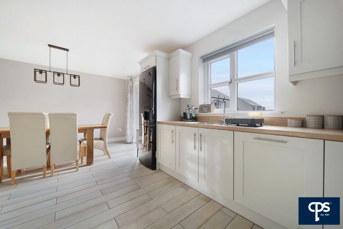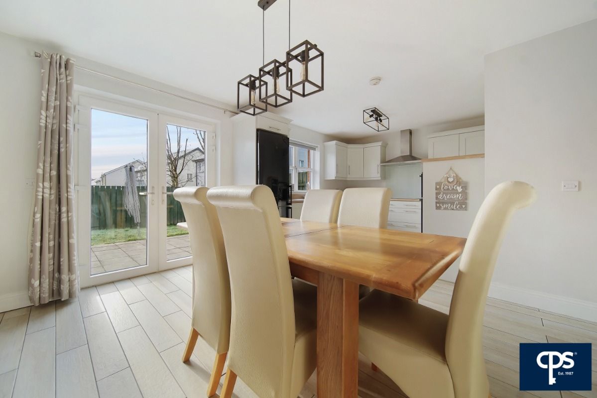 Spacious and bright open-plan kitchen/dining area featuring an excellent range of high- and low-level units. Fully fitted with fridge freezer, electric oven, hob and extractor fan, and dishwasher. Finished with tiled flooring and double patio doors leading to the rear garden, allowing for excellent natural light.