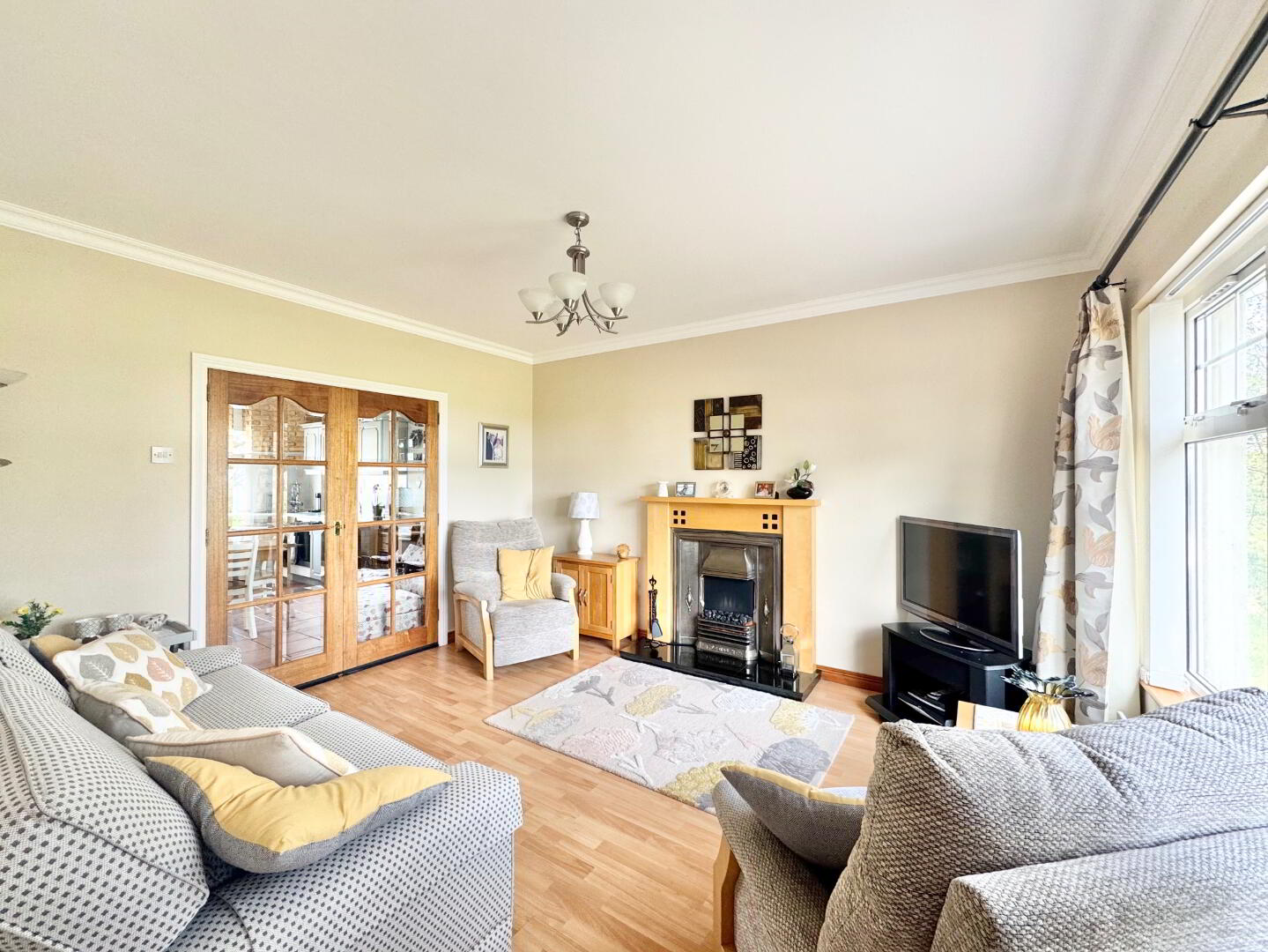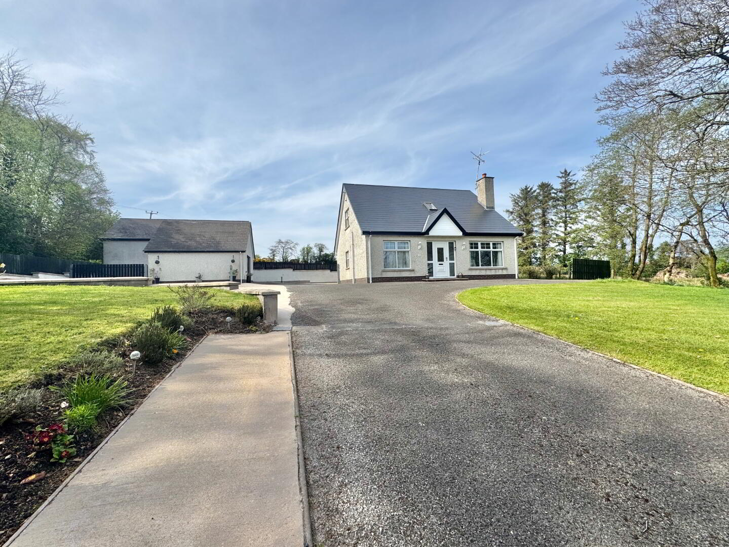 This impressive detached chalet bungalow is set in an excellent location with stunning countryside views. Internally the property is beautifully presented and offers bright and well-proportioned family living accommodation. Boasting four bedrooms, living room, kitchen/dining, family bathroom and utility room. Externally the property is further enhanced by a tarmac driveway, concrete yard,garage, large shed and lawns to front side and rear. Early viewing is recommended to appreciate this beautiful family home.