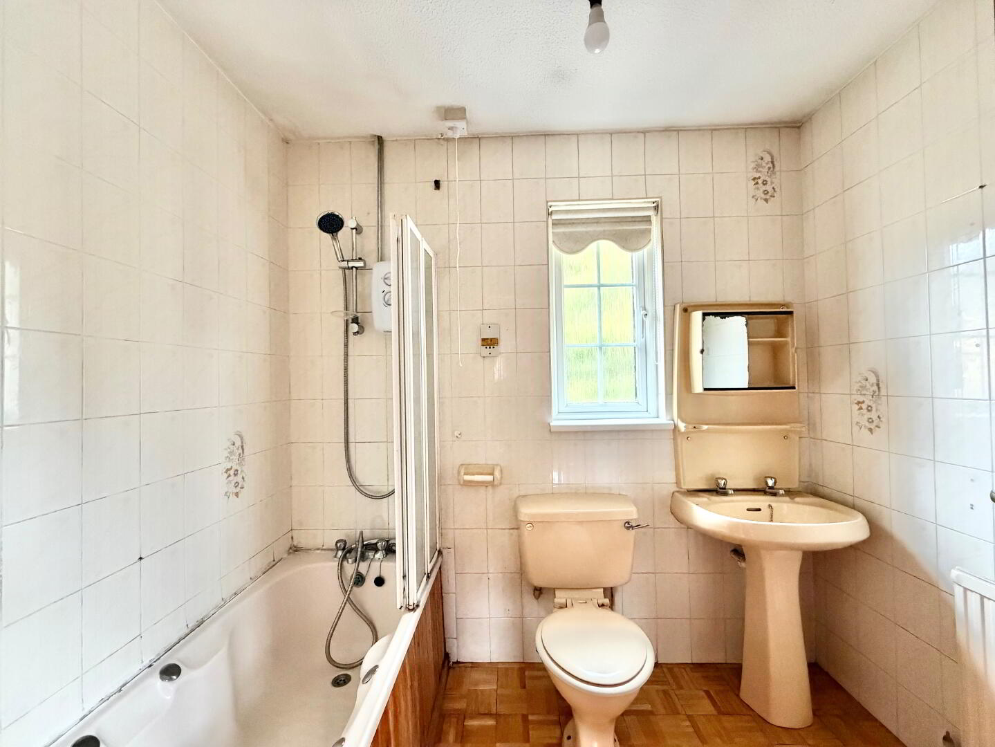 Electric shower above bath
