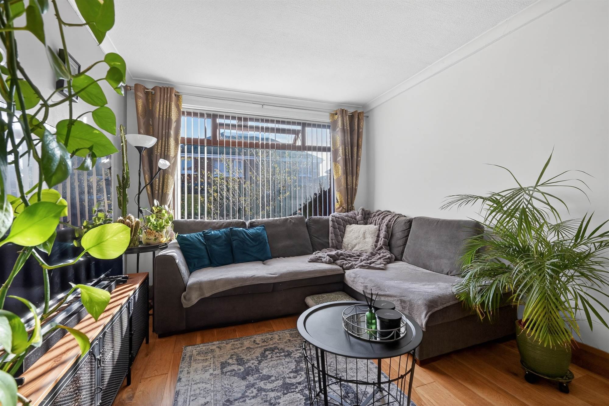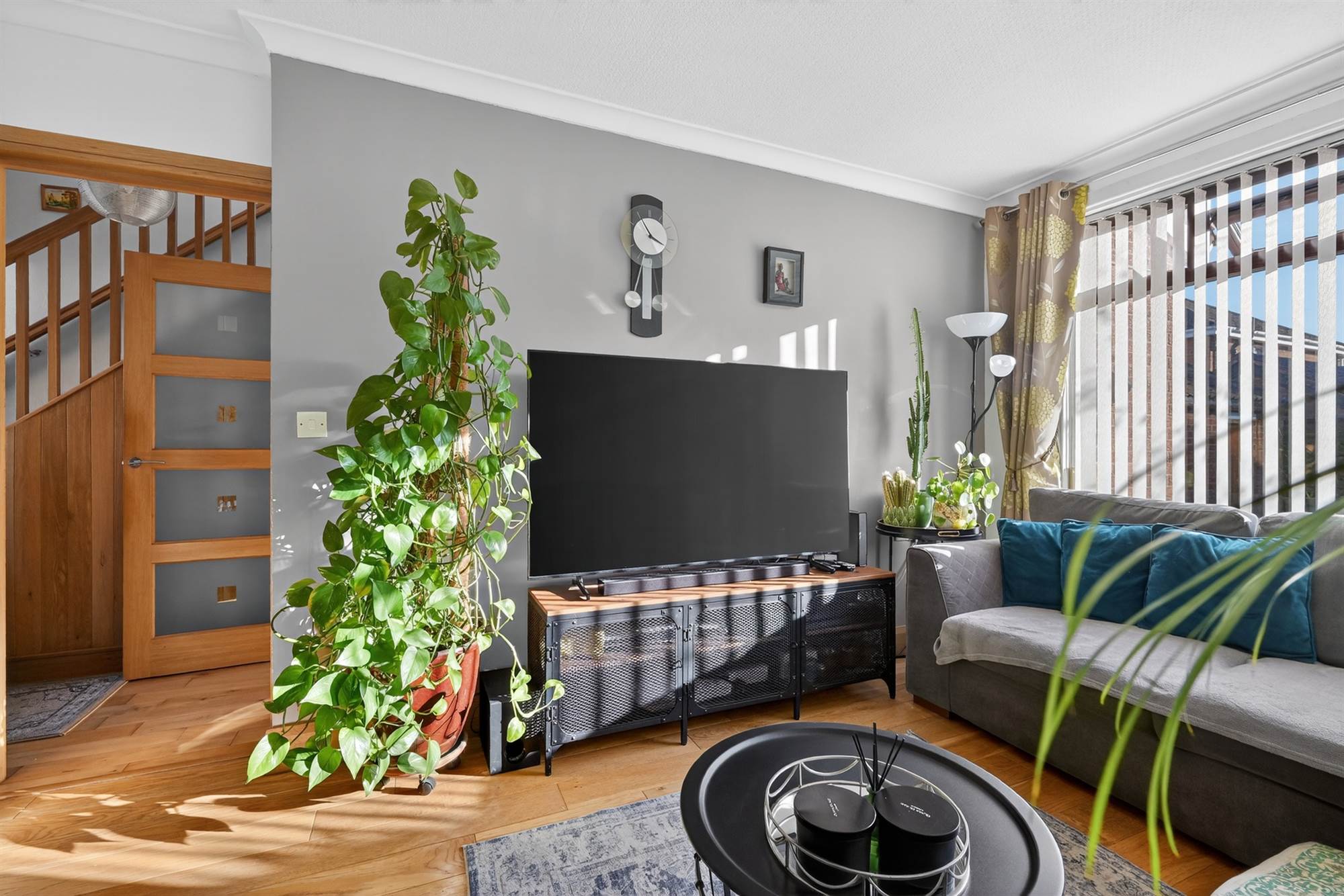 Wood effect flooring. Feature fireplace. Cornice ceiling.