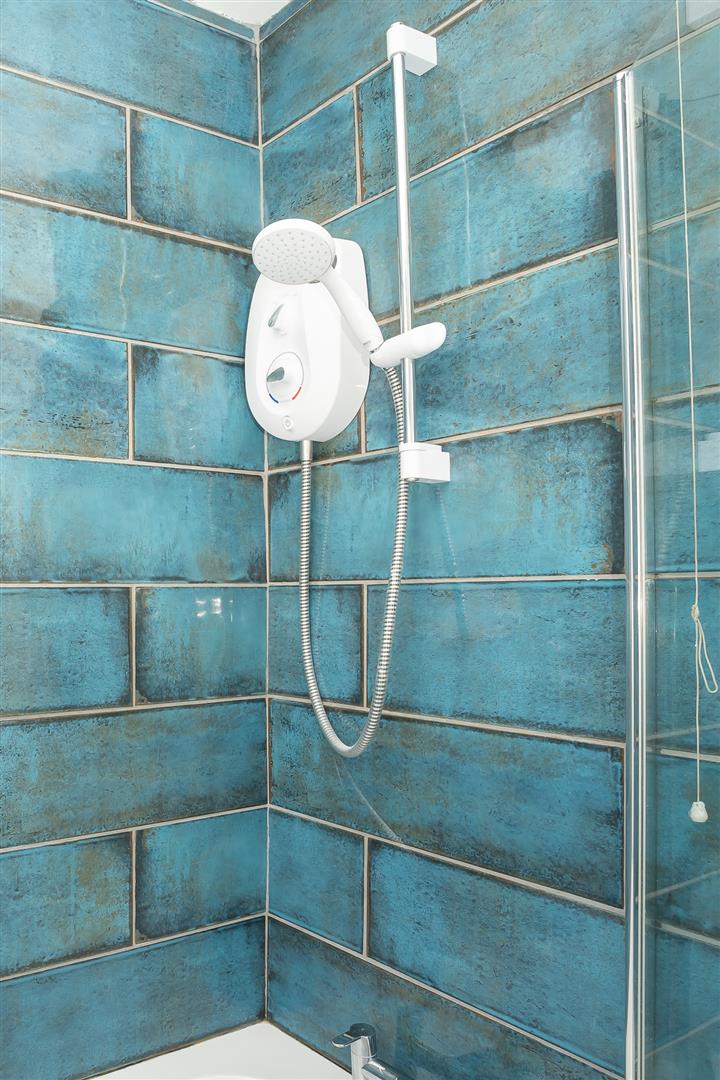 Stylish family bathroom with shower over bath
