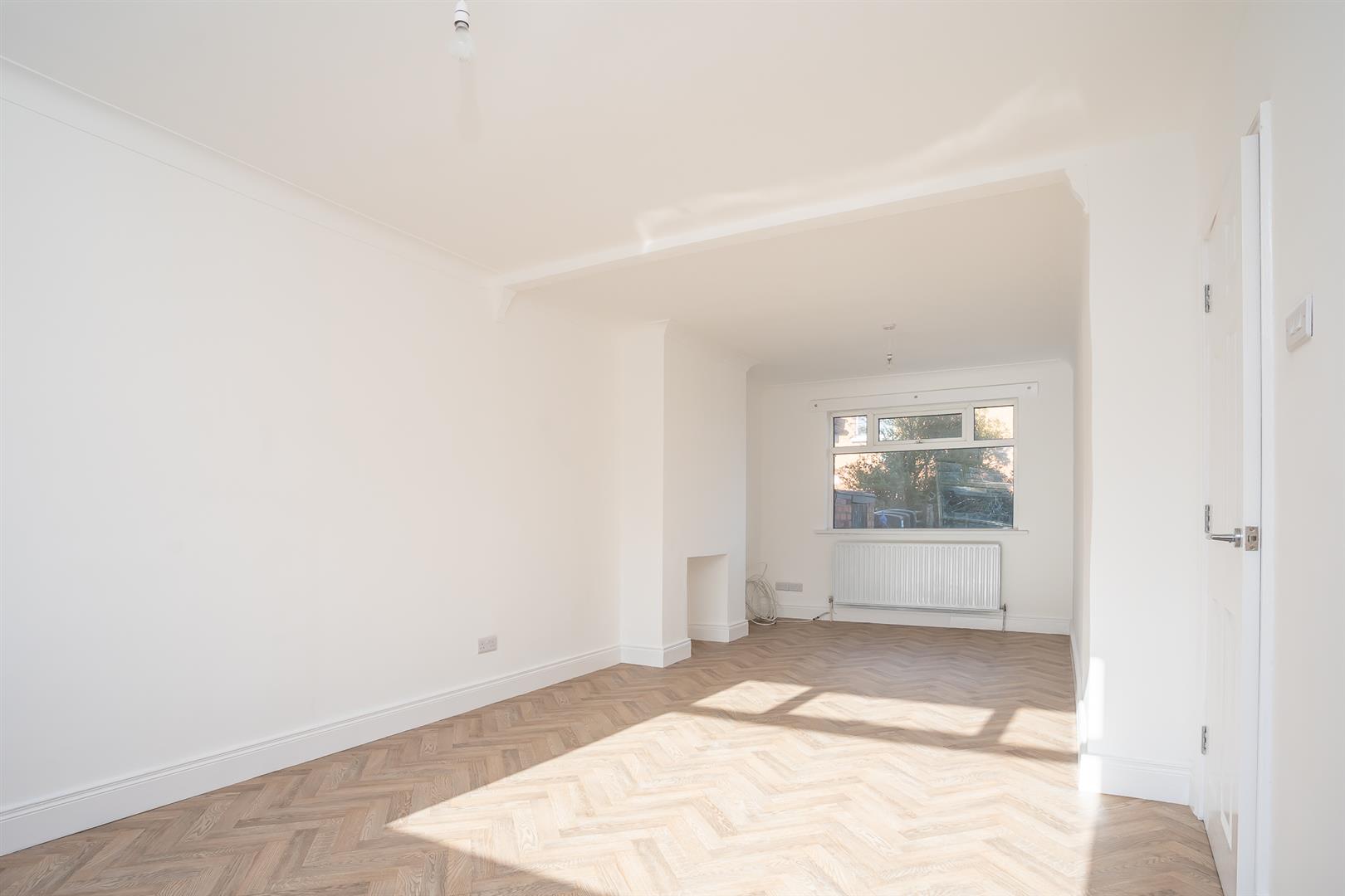 A bright open plan living dining room with dual aspect uPVC windows and skirting