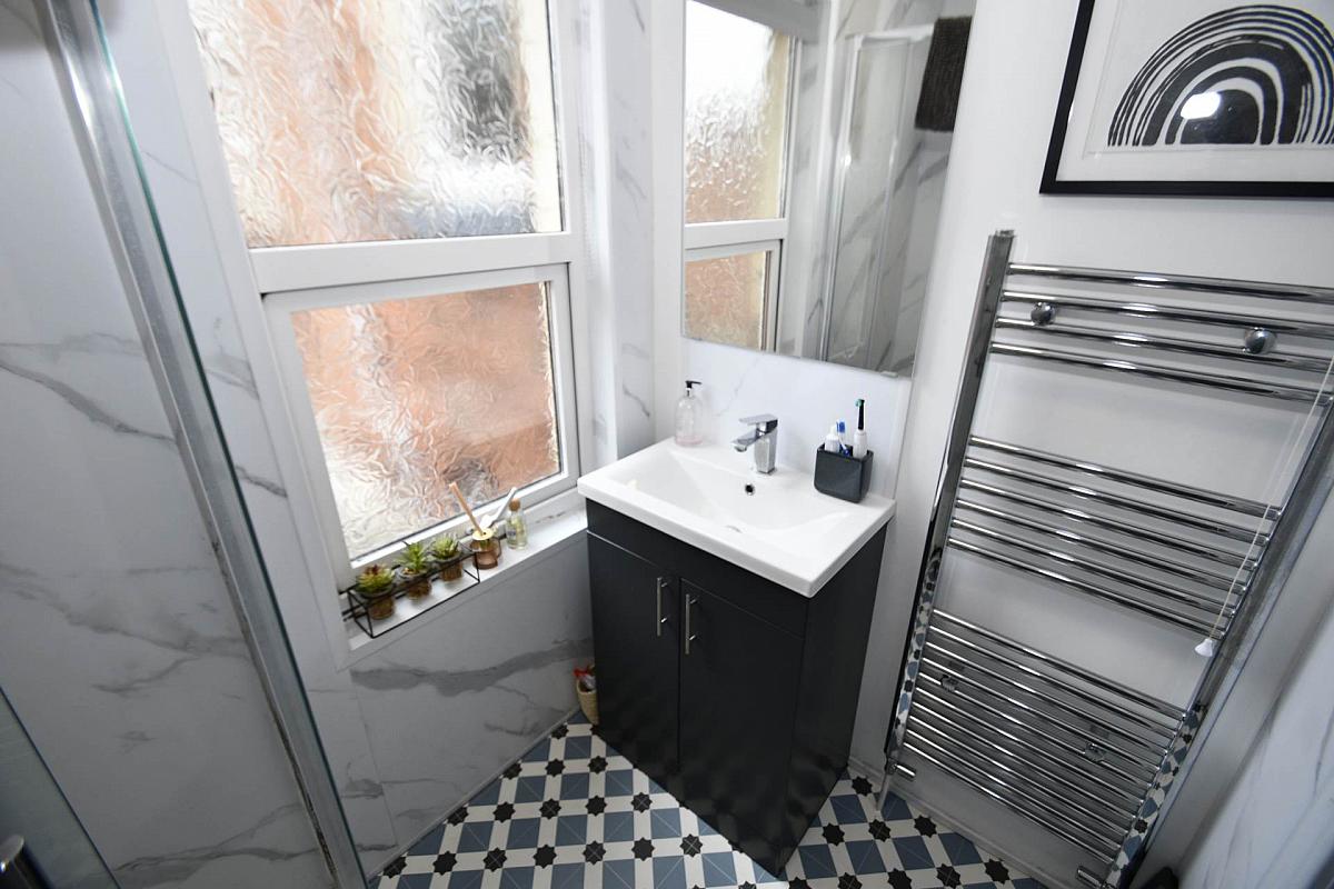 Upstairs, you will find three generously sized bedrooms, each offering ample space and natural light. The sleek, contemporary white family bathroom includes a shower cubicle, combining practicality with modern design.