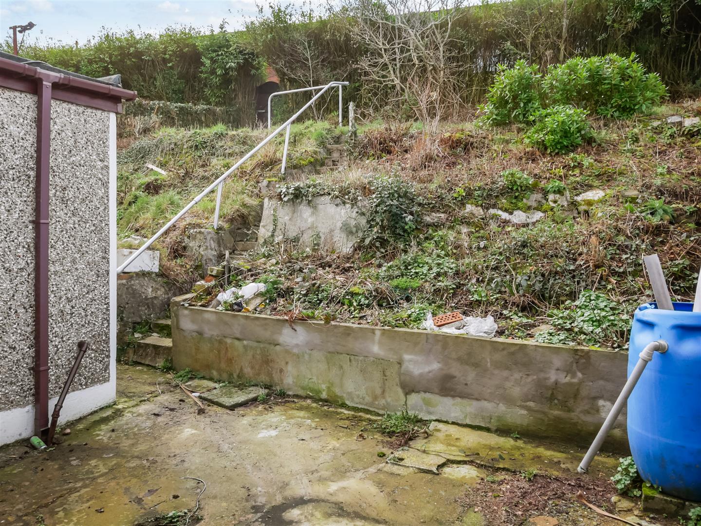 Patio area to rear. Steps up to raised garden area, access via gateway to the rear Drumkeen Court development at Forestside.