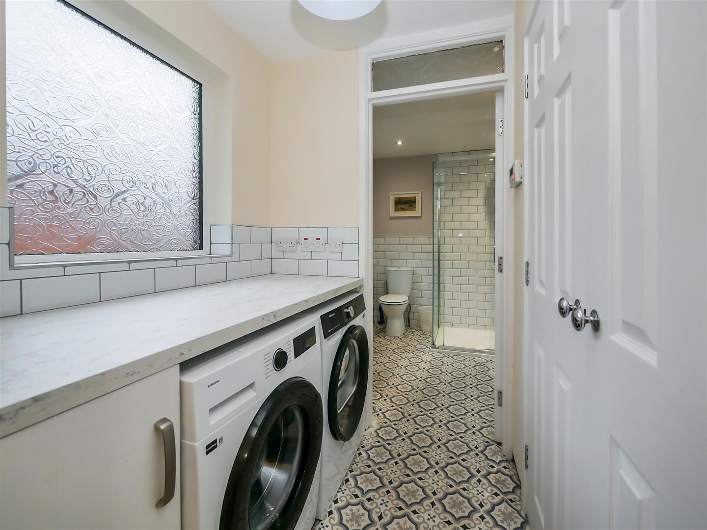 Landing area, utility space, plumbed for washing machine, dryer space, storage cupboard with gas boiler.