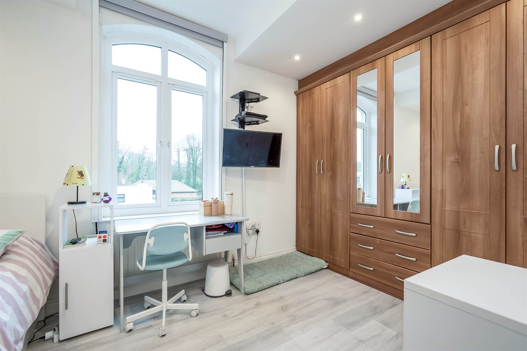 On the first floor is an impressive principal bedroom suite with feature wall panelling, dressing area, modern ensuite shower room, and bright living room. Upstairs on the second floor are an additional three well proportioned bedrooms and a contemporary family bathroom.