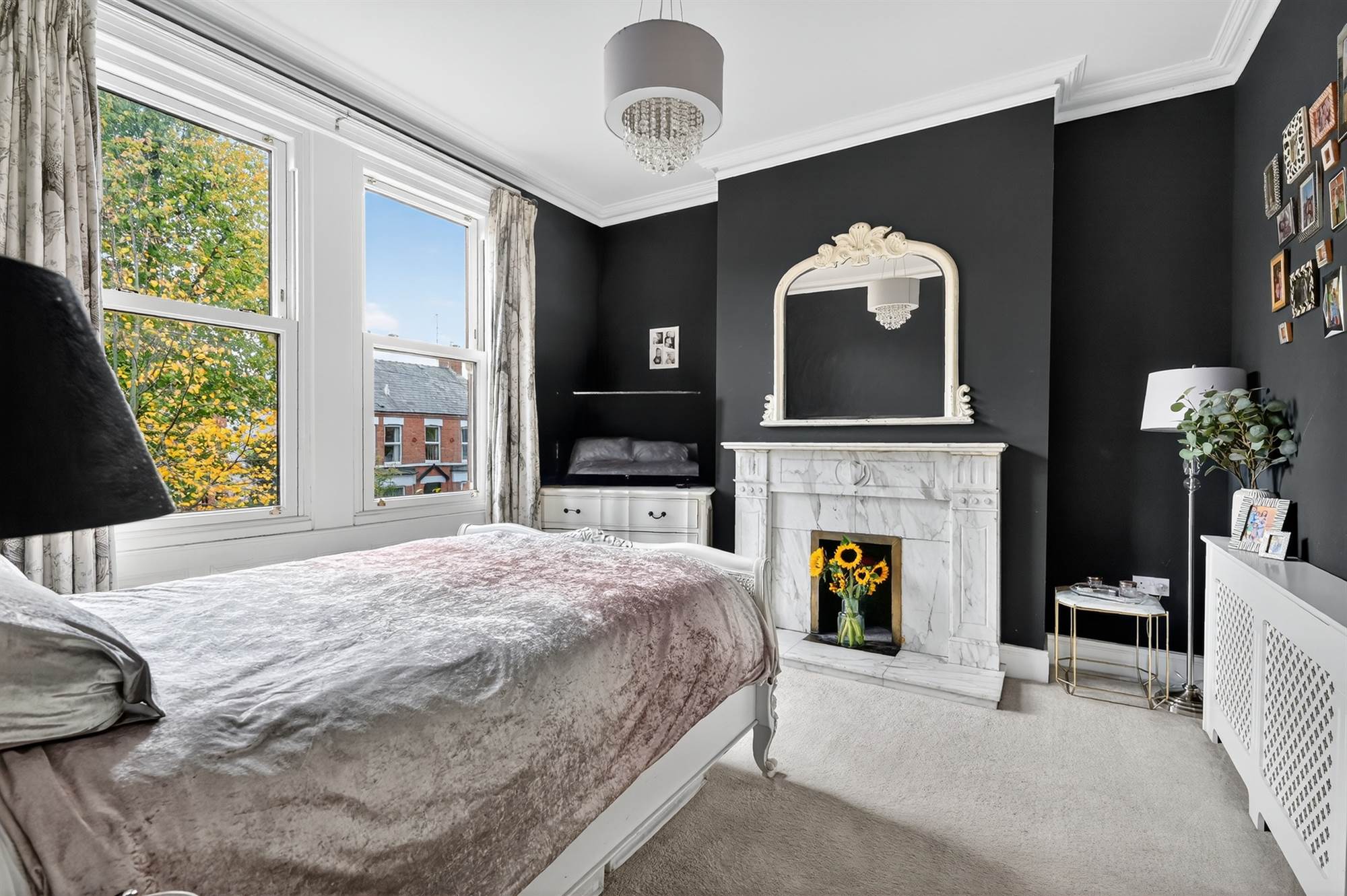 Feature cast iron fireplace with open fire, cornice ceiling, ceiling rose, picture rail, bay window.